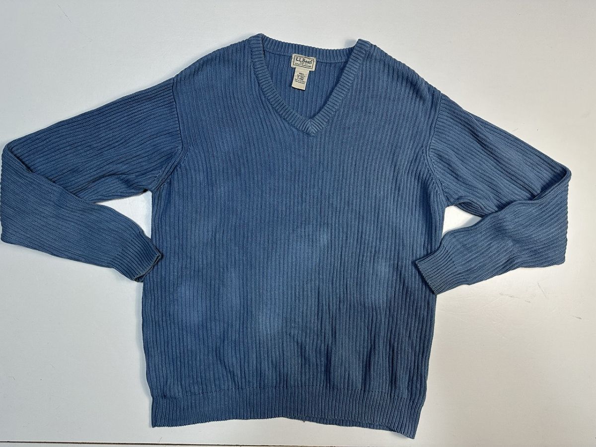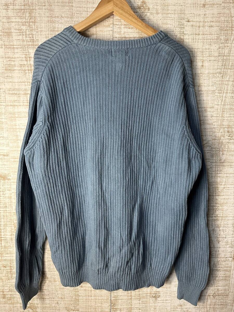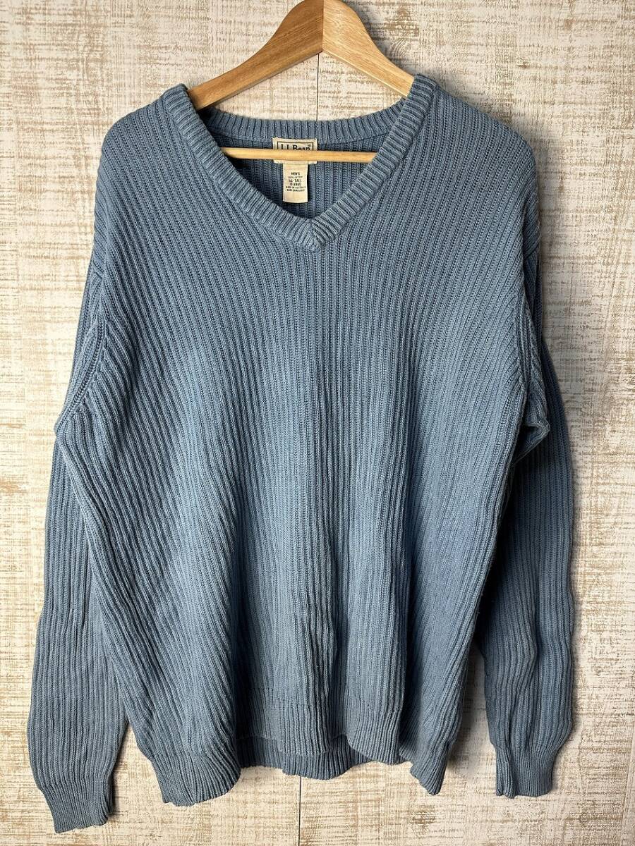 ●US USED US古着 L.L.Bean エルエルビーン 90s 90年代 コットンニット Vネック ミドルゲージ ブルー青水色【L】