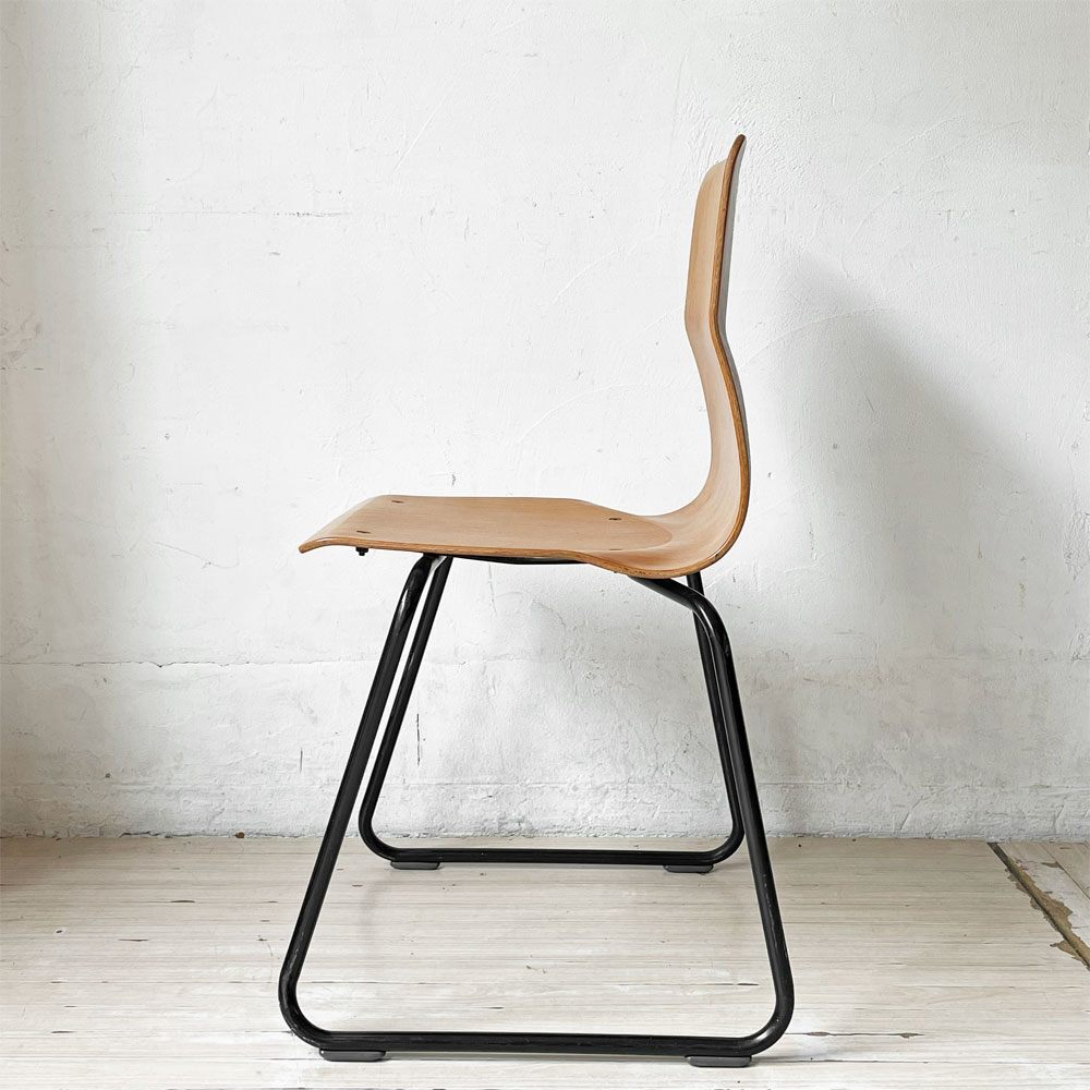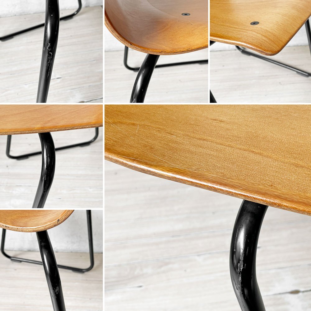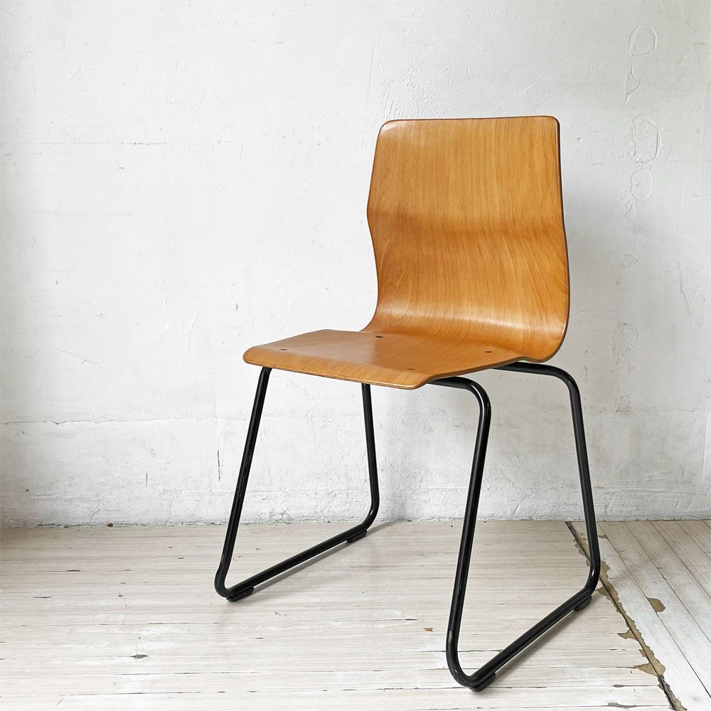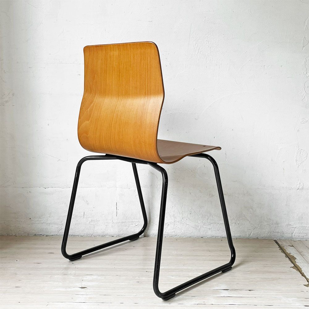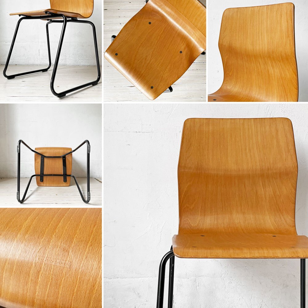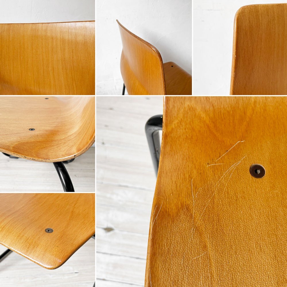 | コメント | ドイツのPAGHOLZ(パグホルツ)社が開発した強化プライウッドを使用したスタッキングチェアです。 こちらは、創業100年を迎えた日本の老舗ブランド"コトブキ KOTOBUKI"で取り扱われていた一脚となります。 特殊な樹脂を使用したプライウッドは極薄ながら強度がしっかりとしており、長時間座っていても疲れにくい快適な座り心地です。 無駄のないミニマルでスリムなデザインはデスクやテーブルにも収まりがよく、スタッキングのしやすい軽量な造りは、移動も楽に行えます。 しなやかな曲線と木目の美しさが魅力な逸品です。 ※当ショップは、主にリサイクル品を取り扱っております。基本的にUSED品である事をご理解頂き、ご入札をご検討下さいませ。 |