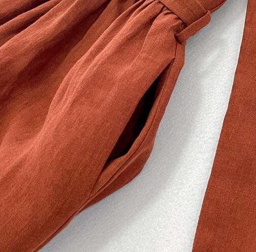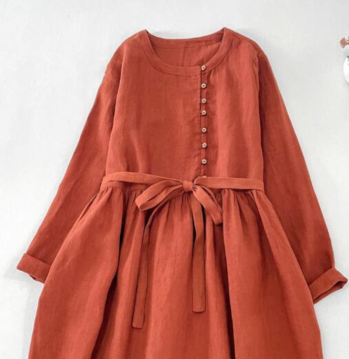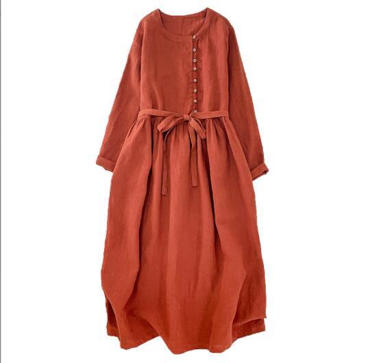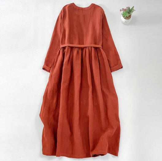 人気品ワンピース 長袖 綿麻 着痩せ Aライン ロングワンピース ポケット付き リネン ゆっ たり 大きいサイズ 通勤体型カバー