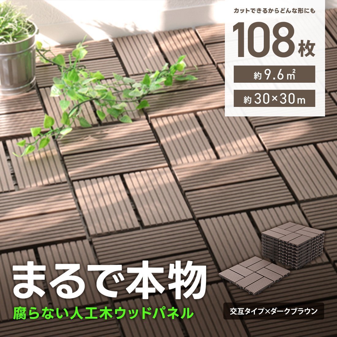 | パズルみたいにサイドの凹凸を繋ぎ合わせるだけで簡単に施工が出来るジョイント式ウッドタイル! ベランダの雰囲気を変えたり劣化してきたベランダの修復に最適! 雨や日差しによる劣化に強く耐腐食性もある人工木を使用。 55%の天然木粉と45%の樹脂で出来ており、天然木製と比べると定期的なお手入れも不要! 小さなお子様やペットにも安心。さらっとした感触でささくれや釘による怪我の心配もなし。 安全に長期間使用できる優れものです! 【商品詳細】 カラー:ダークブラウン(交互タイプ) 表面のサイズ(約):幅29.5cm×長さ29.5cm×高さ2cm ジョイント部分も含んだサイズ(約):幅30.5cm×長さ30.5cm×高さ2cm 表面隙間:5mm 重量(約):0.9kg 圧力強度:3000N 材質:WPC素材(木材・プラスチック複合材) 表面・・・人工木(天然木の木粉55%入り) 裏面・・・ポリプロピレン樹脂 【商品内容】 ウッドパネル × 108 |