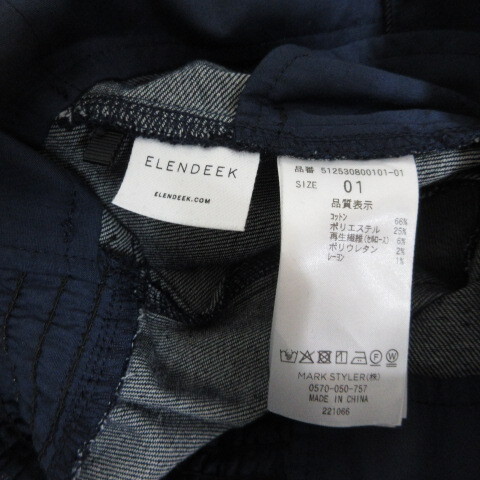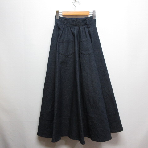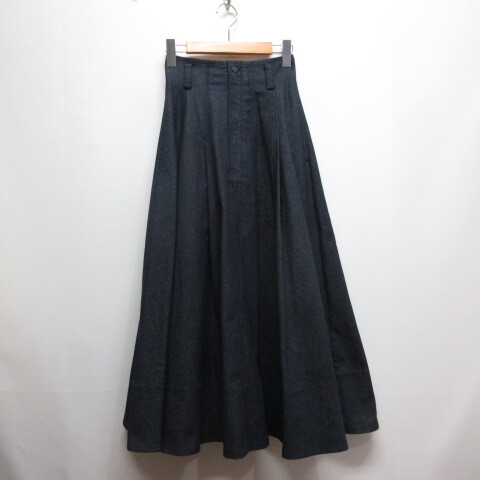 エレンディーク ELENDEEK 美品 デニム タック フレア マキシ スカート 01 濃インディゴ ジッパーフライ バックゴム レディース