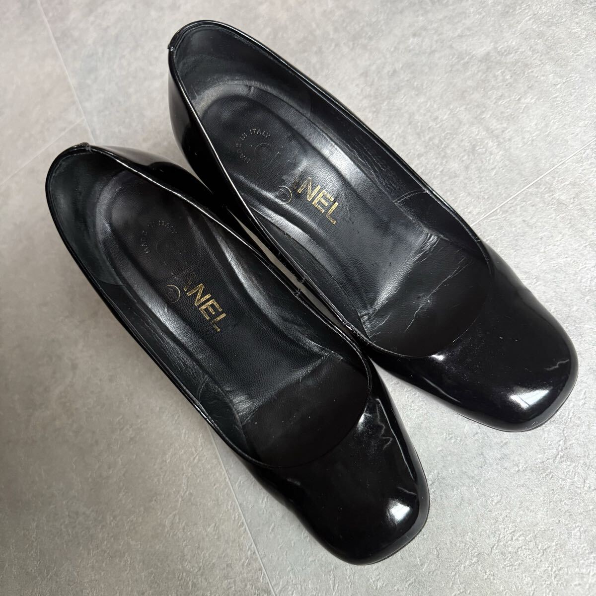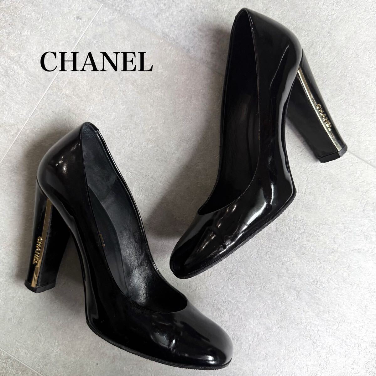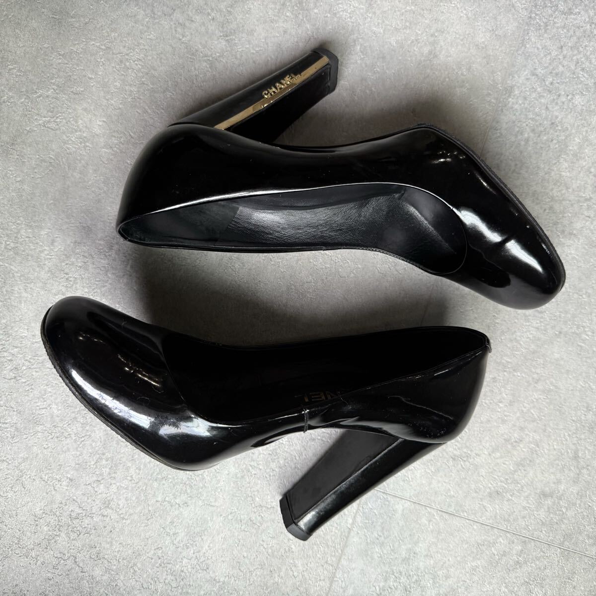 CHANEL シャネル ロゴパンプス パテントレザー ブラック ゴールド 36 1/2C 23.5cm