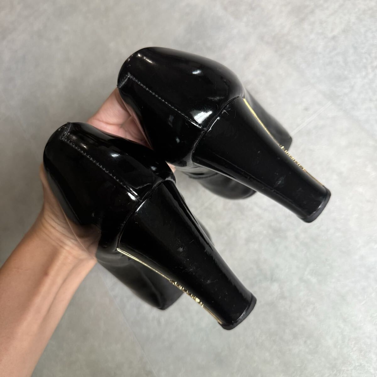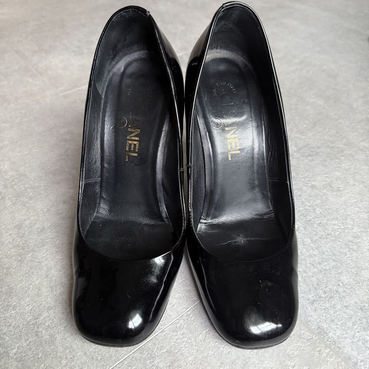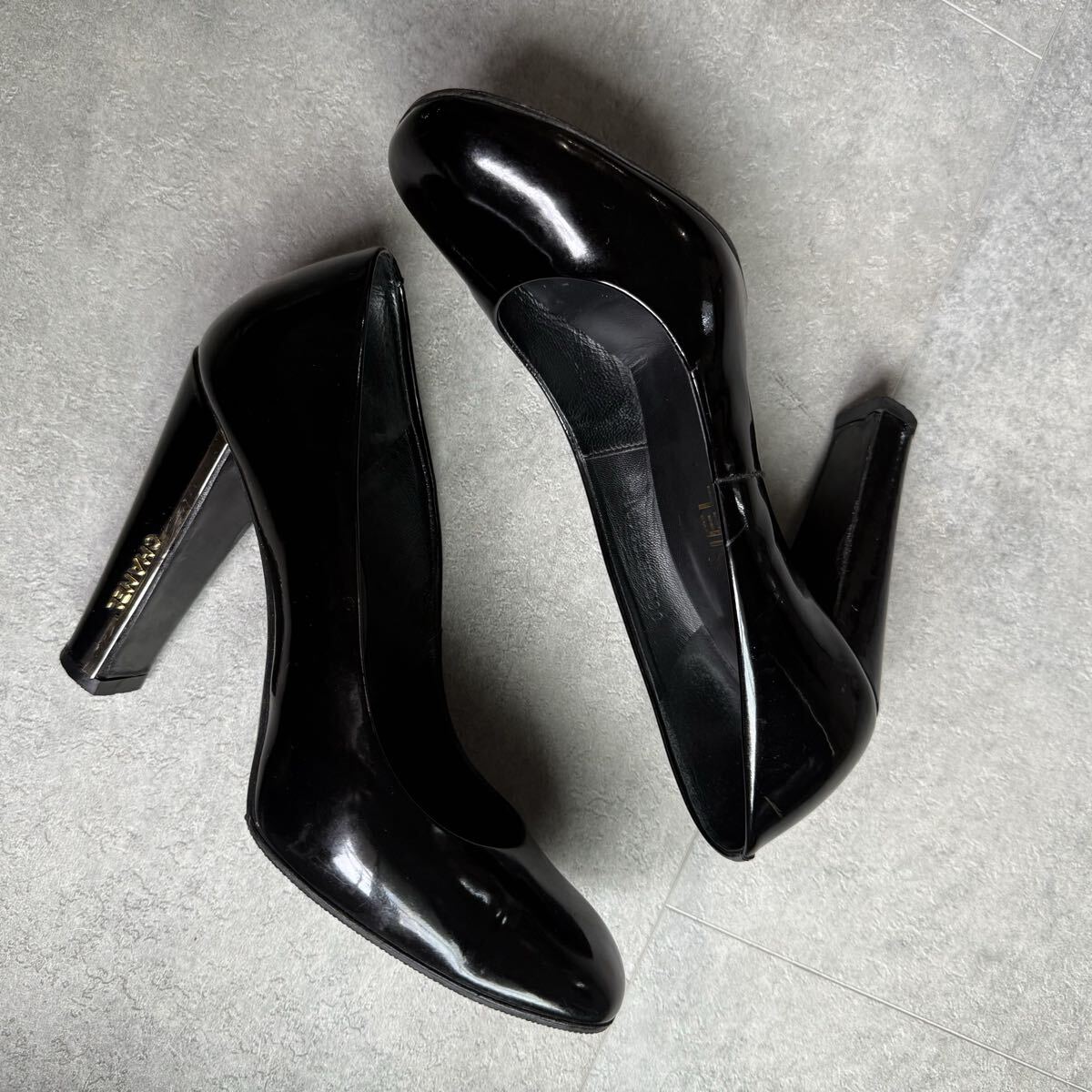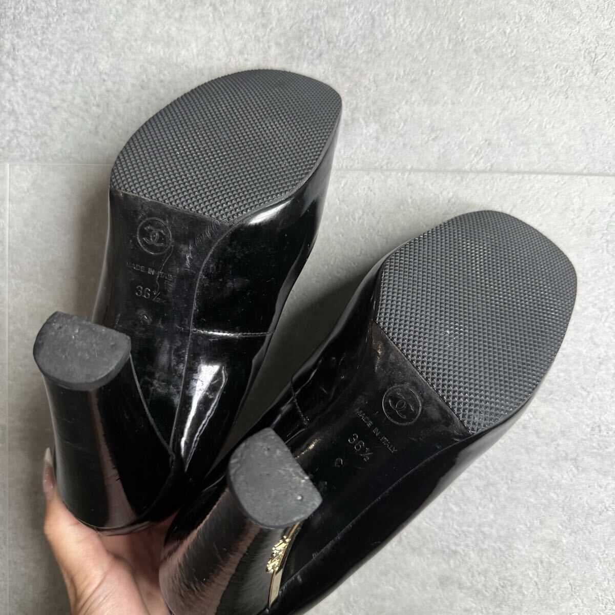CHANEL シャネル ロゴパンプス パテントレザー ブラック ゴールド 36 1/2C 23.5cm