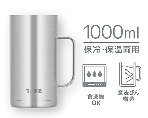 ●魔法びん構造で快適!氷を入れてもたっぷり飲めるジョッキタイプ。容量1Lの特大モデル ●ステンレス魔法びん構造で冷たさ・温かさ長持ち ●ハンドル付きで持ちやすい ●食洗機対応 ●氷が溶けにくいから味が薄まらない ●結露しにくく、机を汚さないのでコースターいらず