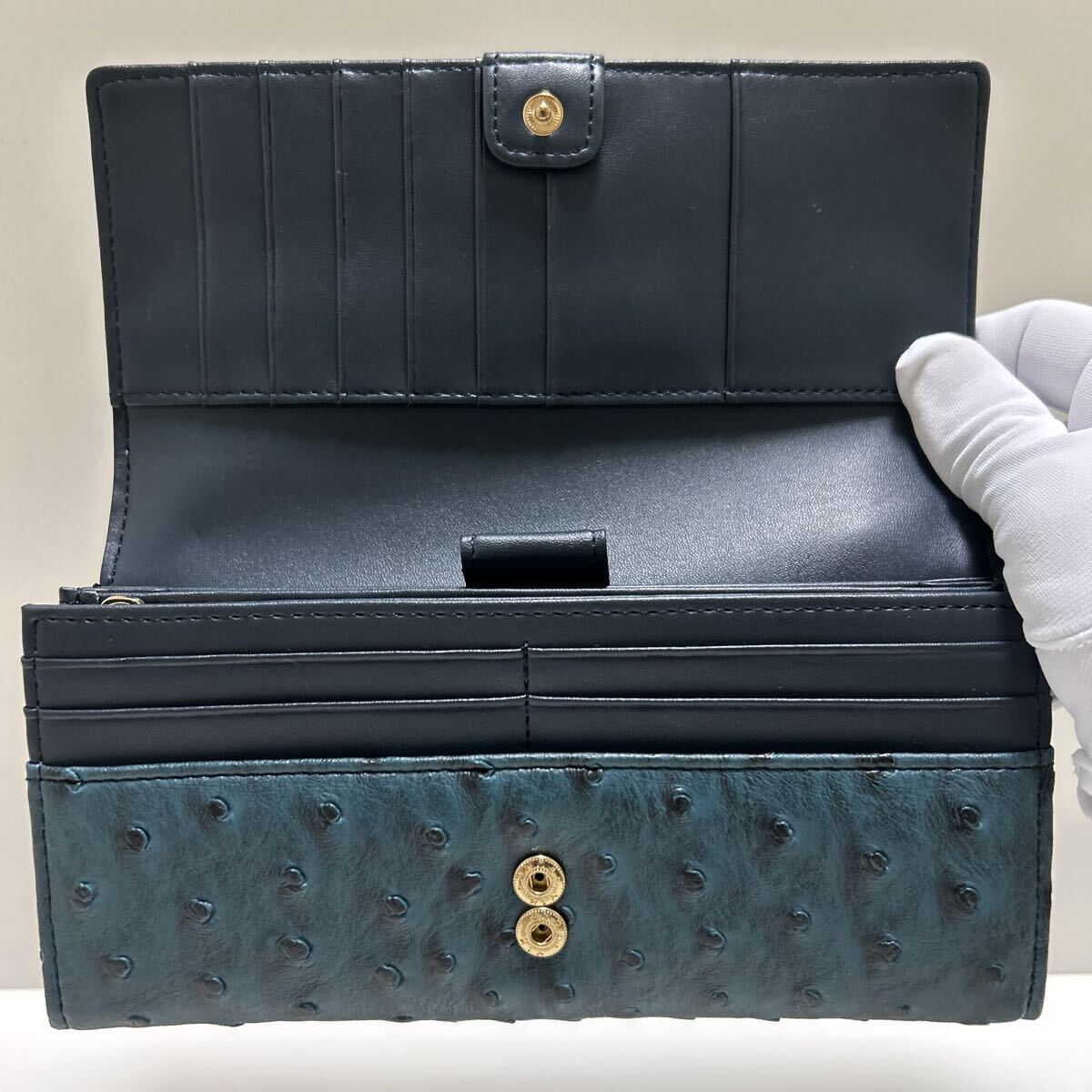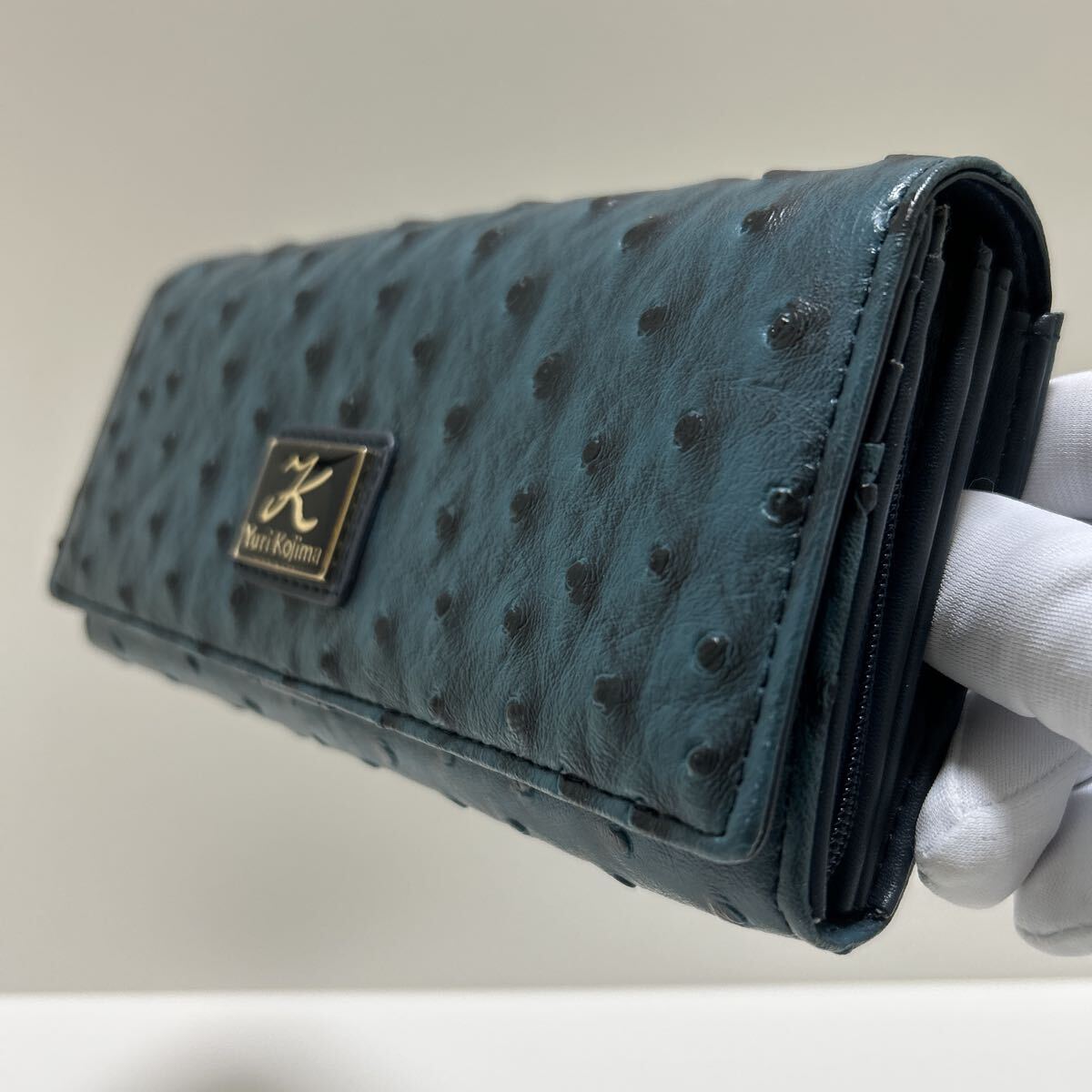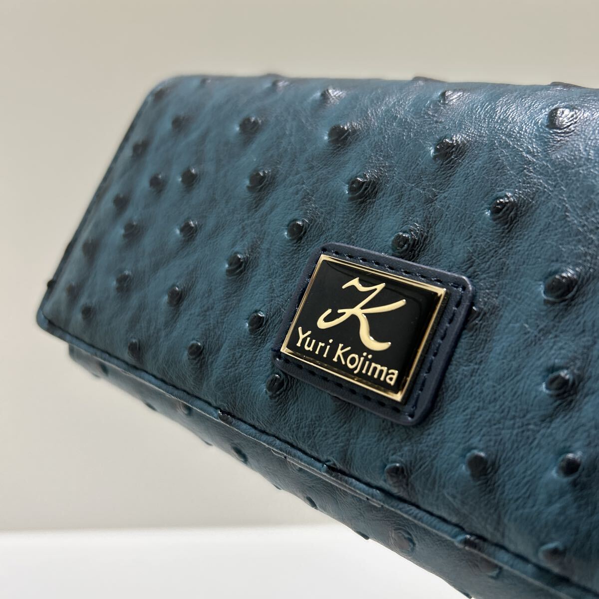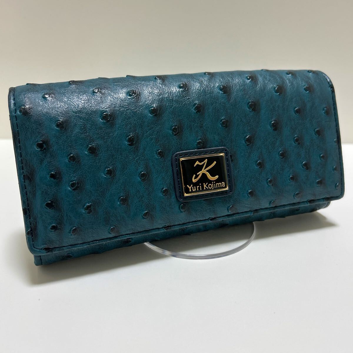 ☆未使用-展示品☆ ◆Yuri Kojima ユリコジマ オースト型押し コインが分けられる 大容量 長財布 ブルー◆ 2段ホック【送料無料】1020