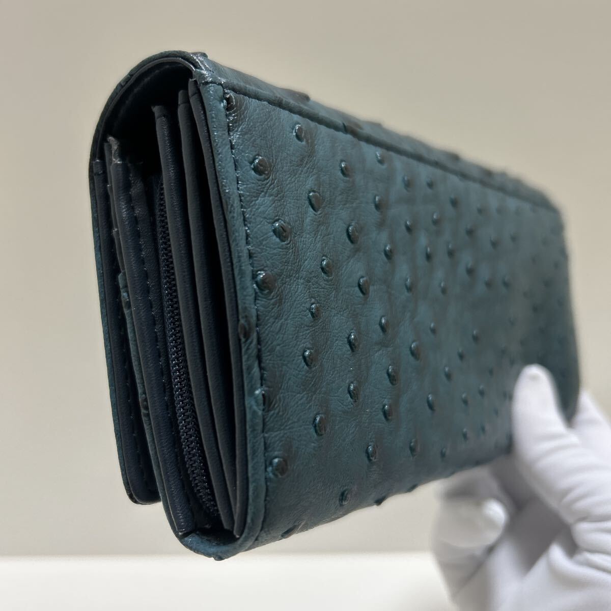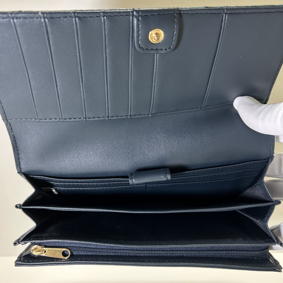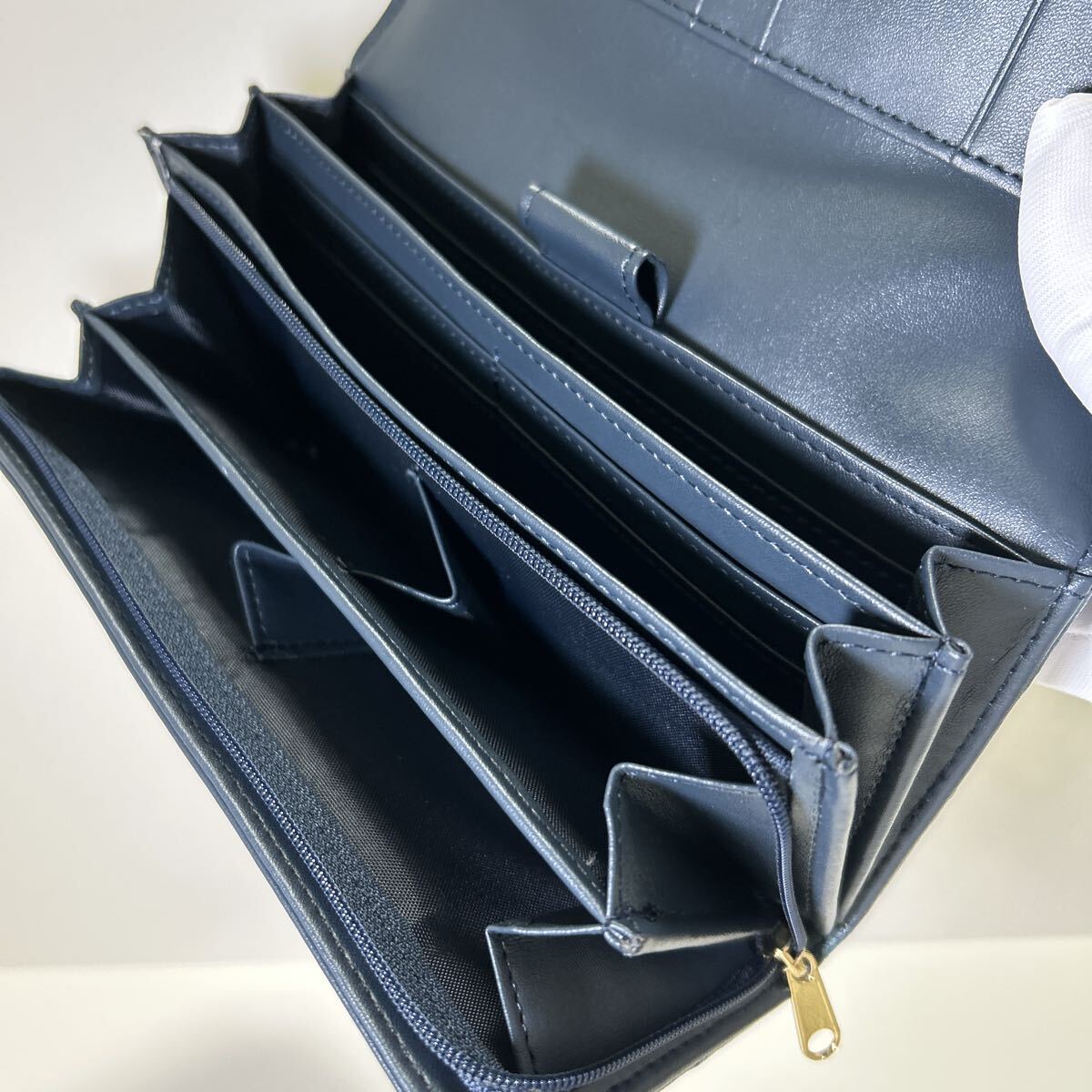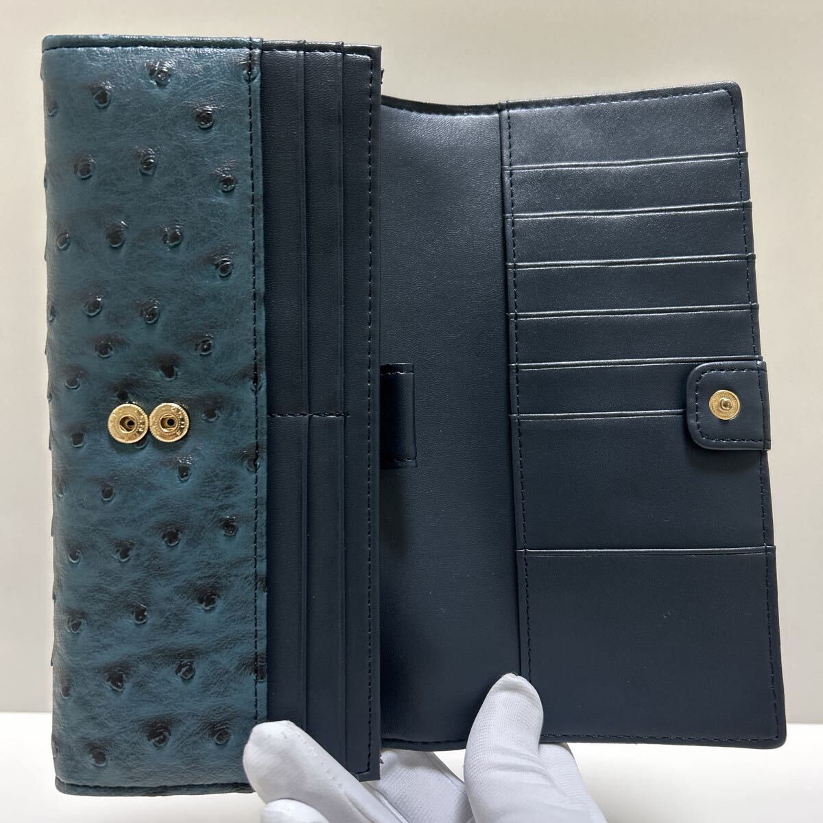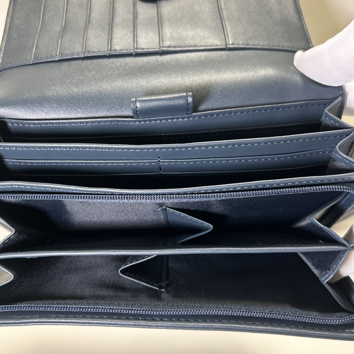 ☆未使用-展示品☆ ◆Yuri Kojima ユリコジマ オースト型押し コインが分けられる 大容量 長財布 ブルー◆ 2段ホック【送料無料】1020