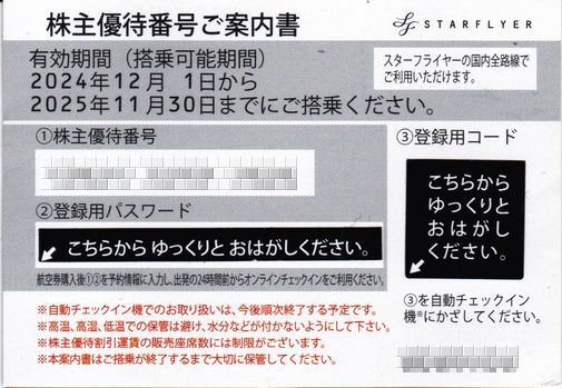 急に航空機を予約する際でも、予約に必要な株主優待番号・登録用パスワードの通知が可能です。