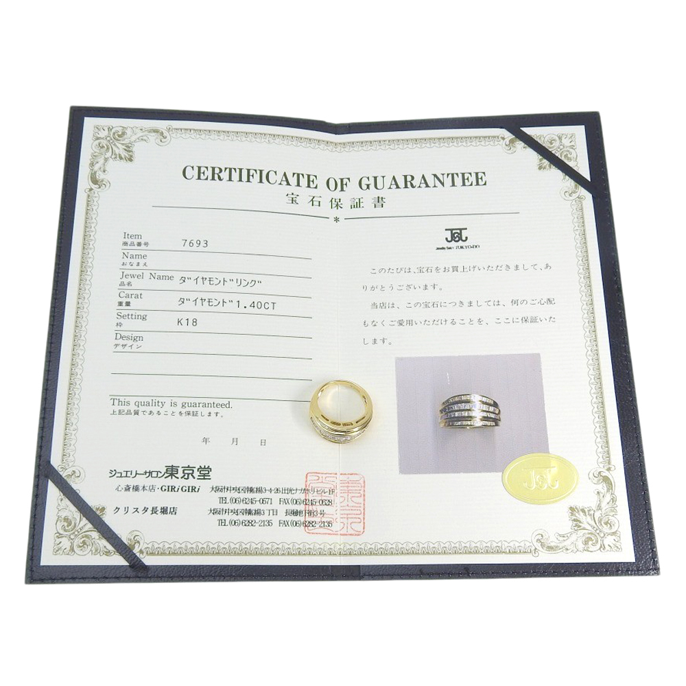 【本物保証】 保付 新品同様 リング 指輪 約9.0g K18YG メレダイヤモンド 1.40ct 約14号 1.4カラット以上 豪華 ノーブランド No brand