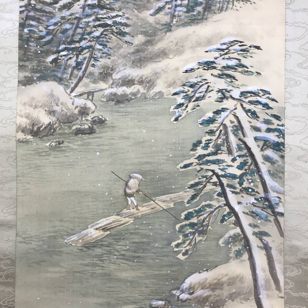 【作品状態】 本紙は絹本肉筆です。本紙は多少の薄汚れあります。表装は天地に多少の汚れシミ、色ムラあります。