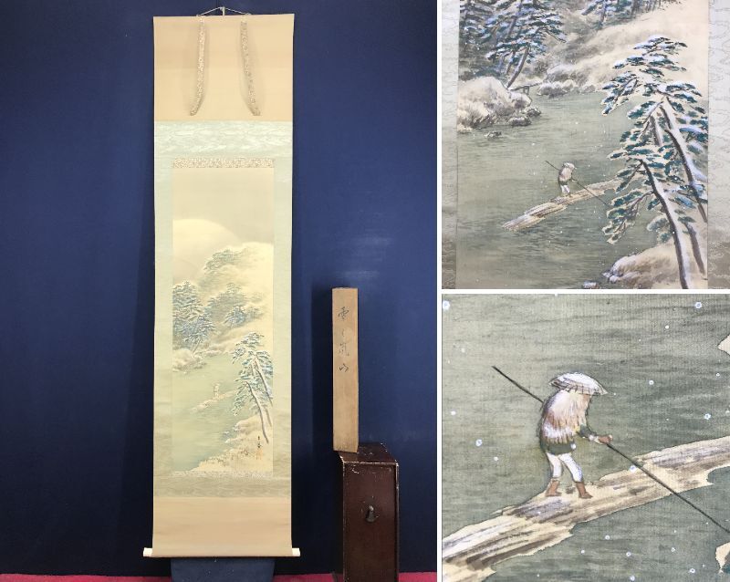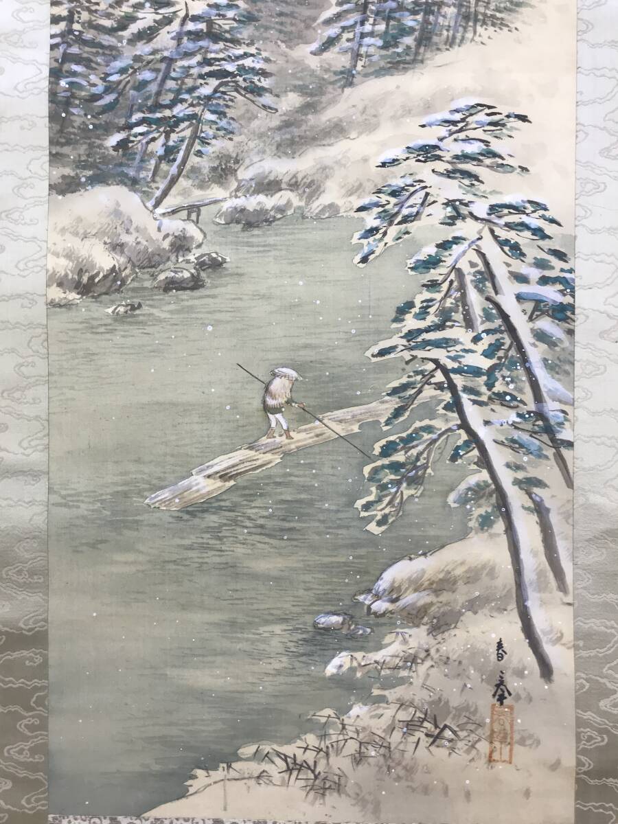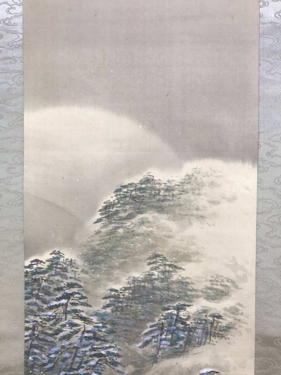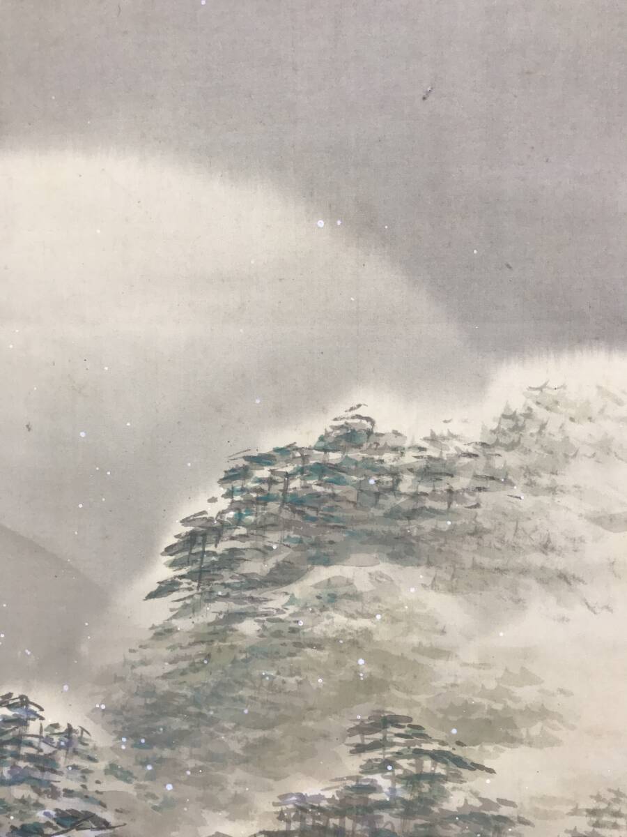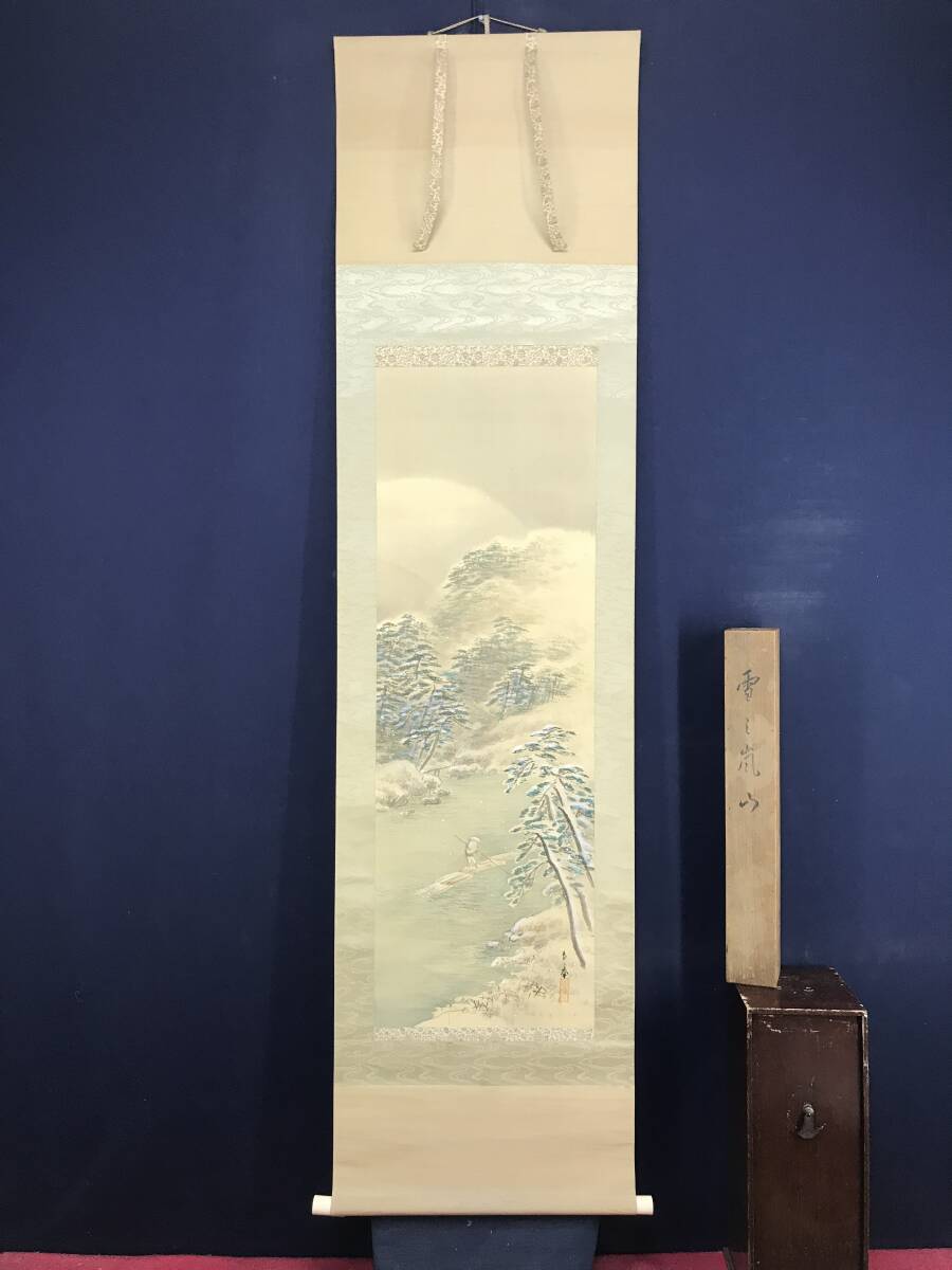 真作/山元春挙/雪の嵐山/雪景山水図/掛軸☆宝船☆AK-195
