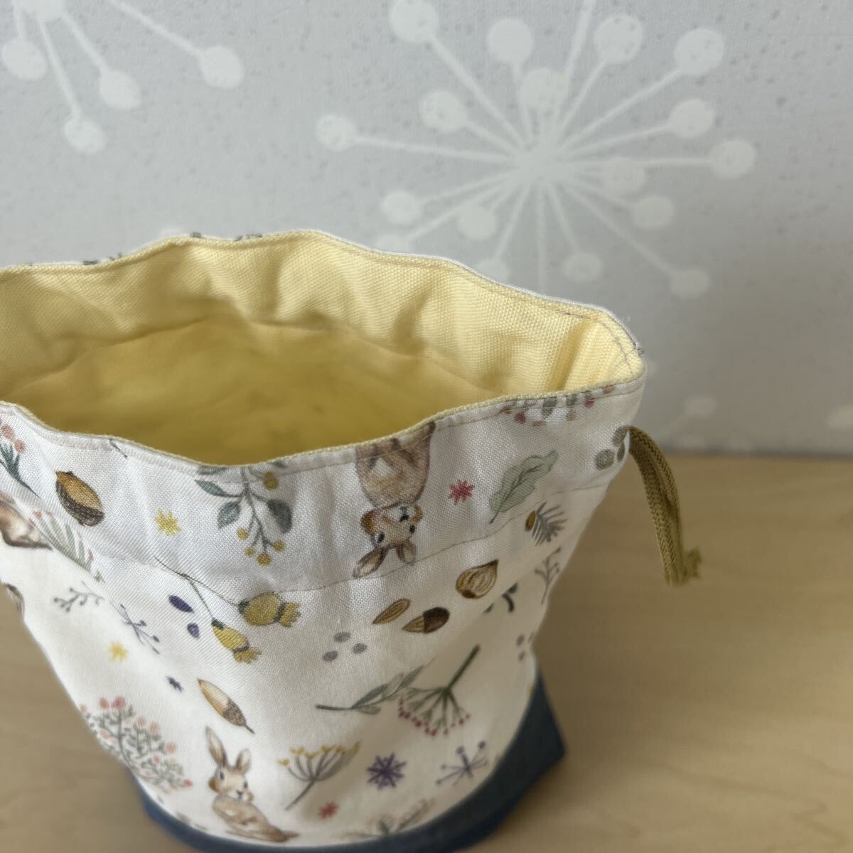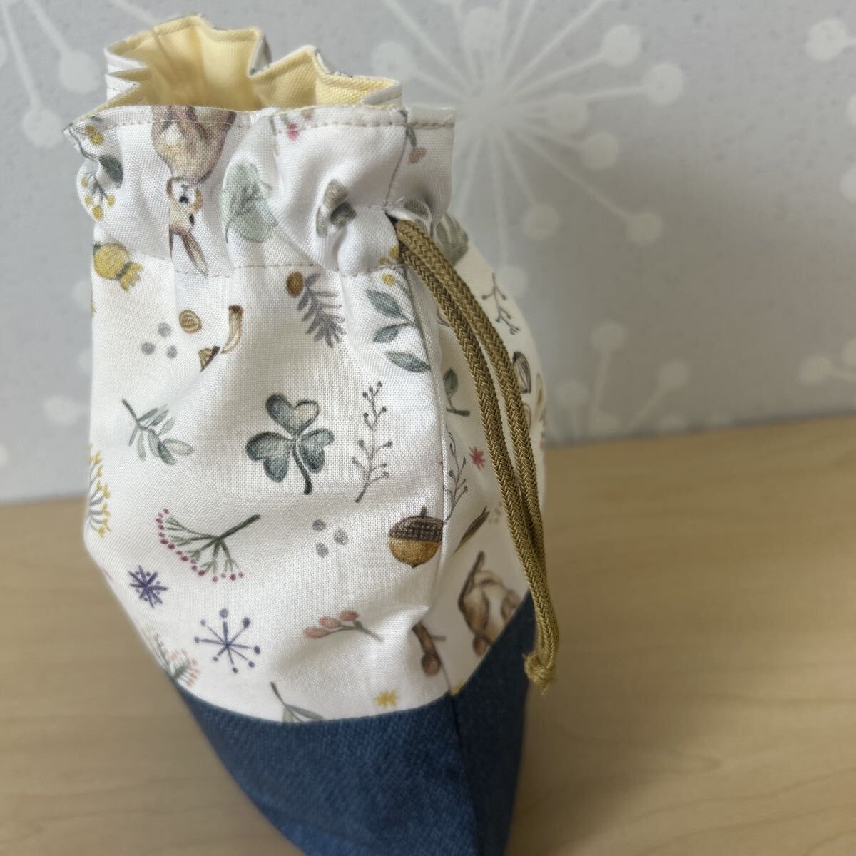今回は小さな布が貯まってきましたので、コップ入れ、お弁当袋、お着替え袋など作りました。