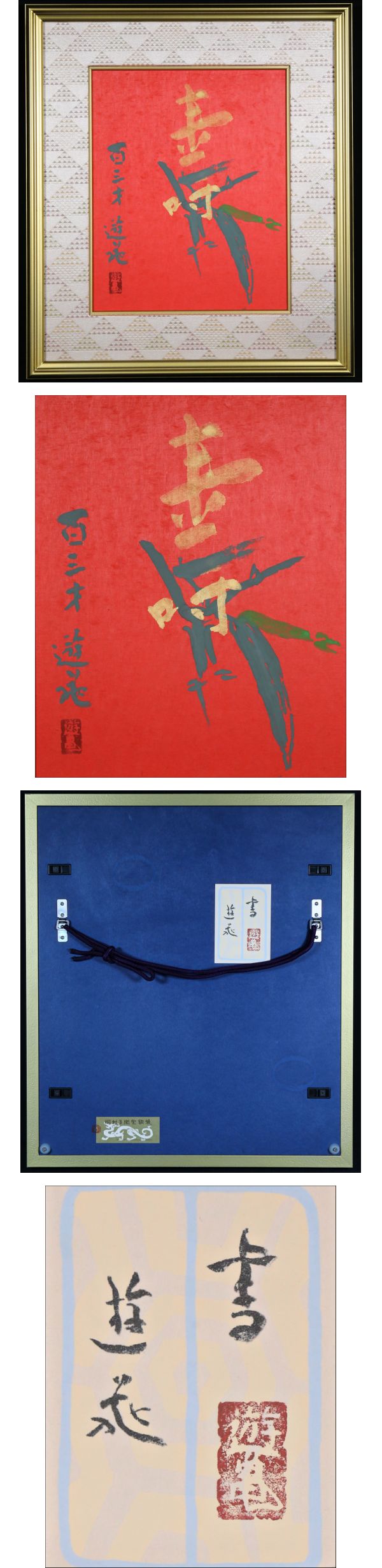 | 商品説明 | 【 作家名 】小倉遊亀 【 作品名 】書「寿(壽)」 【 技 法 】紅地紙本に金泥 【 サイズ 】 作 品:約30.5×24.5cm 額 :約47.0×41.4×3.8cm 【付属品】タトウ箱、布袋 【商品説明】 作品の状態は大変良好です。画面左下にサインと落款、額(多聞堂)裏に共シールがございます。 ※詳しくは画像をご覧ください。(ご不明な点はご入札前にお問い合わせください。商品説明にも画像を掲載しています。) 【その他】 ・画像にて状態をご確認、ご判断、ご了承の上、入札くださいますよう、お願いいたします。 ・画像の掲載には実物に出来る限り近づけるよう努めておりますが撮影時の照明、ご使用のパソコン等の種類によって色合いが若干異なって見える場合がございます。 ・画像や商品説明でわかり難い点、ご不明な点へのご質問などは、必ずご入札前に”出品者への質問”よりお問い合わせください。(定休日は土・日・祝日です。定休日にメールを頂いた場合は、翌営業日に返信させていただきます。) ・商品説明等に記載した全ての事項をご理解、ご了承の上、ご入札いただき、ノークレーム・ノーリターンでお取引くださいますようお願い致します。 ・落札後24時間以内に取引ナビへご入力、また5日以内にお支払いください。期日を過ぎた場合、キャンセル扱いとさせていただく場合がございます。その際ヤフーから自動的に「非常に悪い」の評価がついてしまいますので、ご了承ください。 ・新規の方、または“悪い”評価がある方はご入札前に「質問」欄から購入意思をご連絡ください。 ・悪い評価が2個以上ある方はご入札をお断りいたします。 (※お願いに反してご入札された場合、こちらの判断で入札を取り消しさせていただきます。予めご了承ください。) |