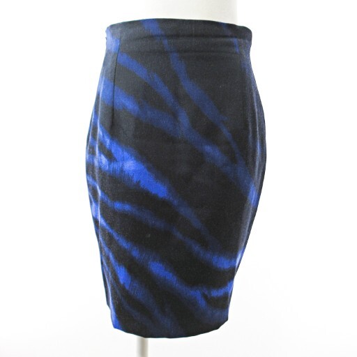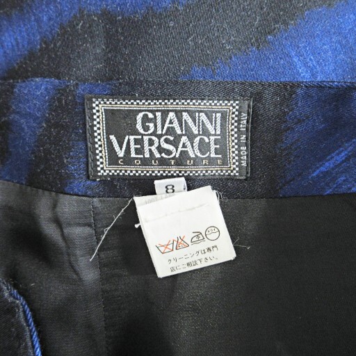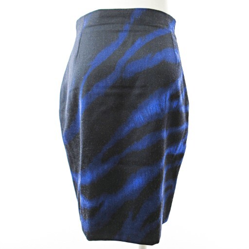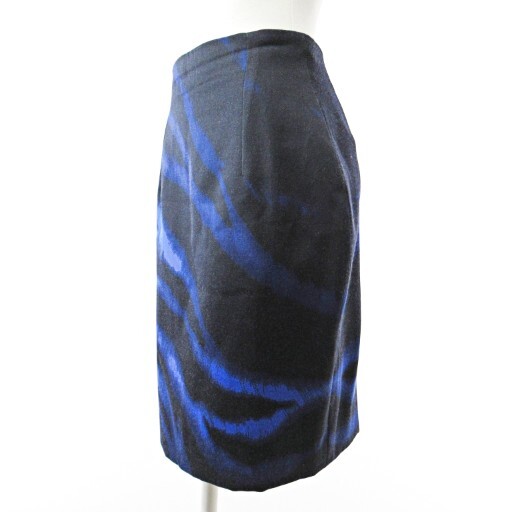 ジャンニヴェルサーチ ヴェルサーチェ GIANNI VERSACE ウール タイガー柄 トラ柄 タイト スカート 膝丈 42 青 黒 ブラック IBO82