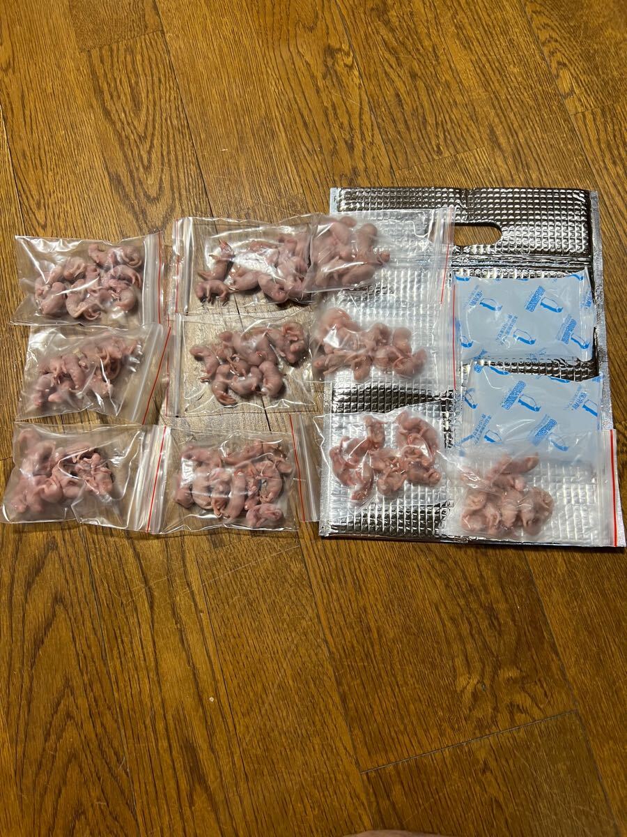 冷凍庫を超低温冷凍庫にしました。−85°cで保存が可能な研究施設用のものを導入しました。これにより冷凍焼けを起こす0°c〜10°cの温度帯を素早く通過できドリップも防ぎます。更に新鮮な状態でお届けすることが可能になりました。普段から皆様より弊社のマウスは食いがいいね!と仰って頂いてますが更に良いものが提供できると自負しております。引き続き宜しくお願い致します。