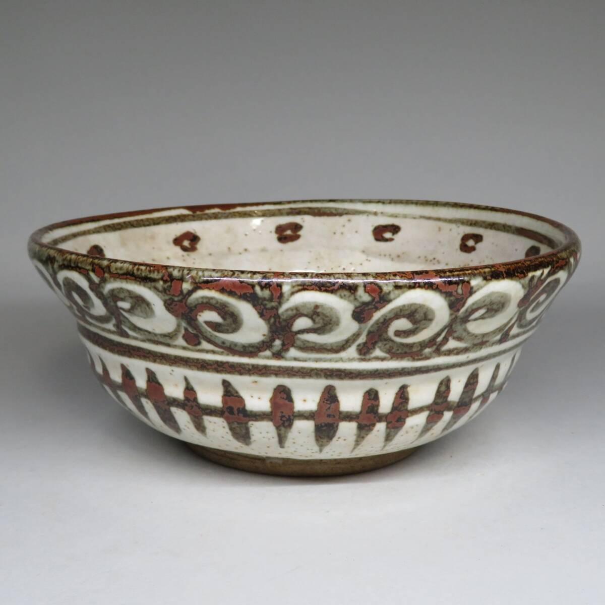 | 京焼 名工「五代 清水六兵衛」 黒呉須 鉄絵 渦巻唐草文 大鉢 菓子鉢 盛鉢 無傷 茶道具 和食器古陶磁器 古美術骨董品 | ||