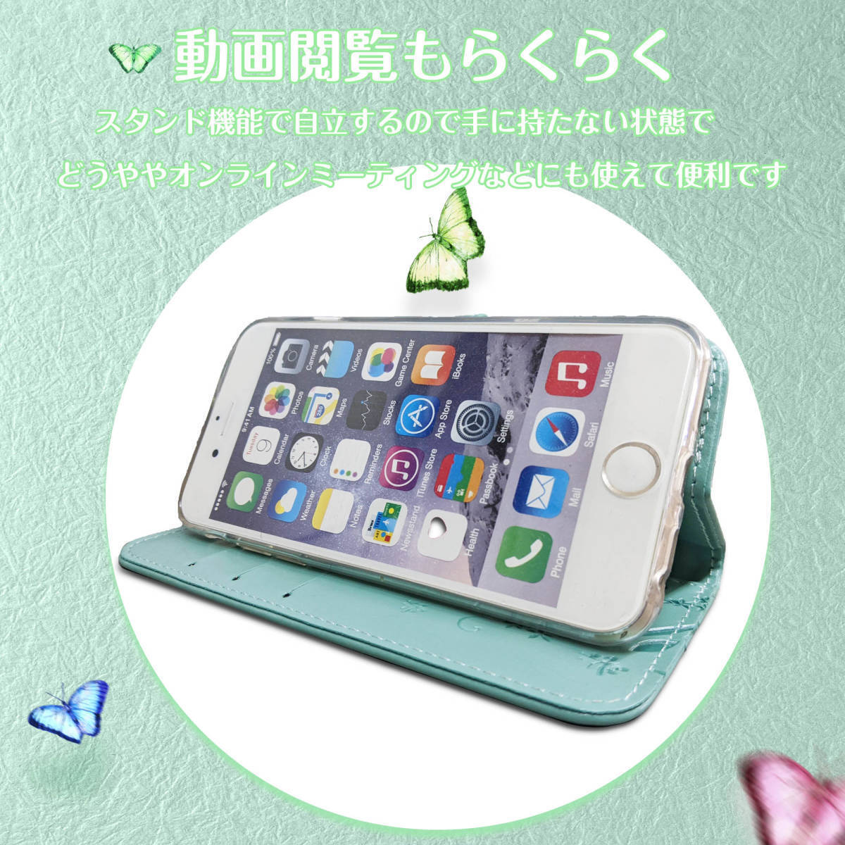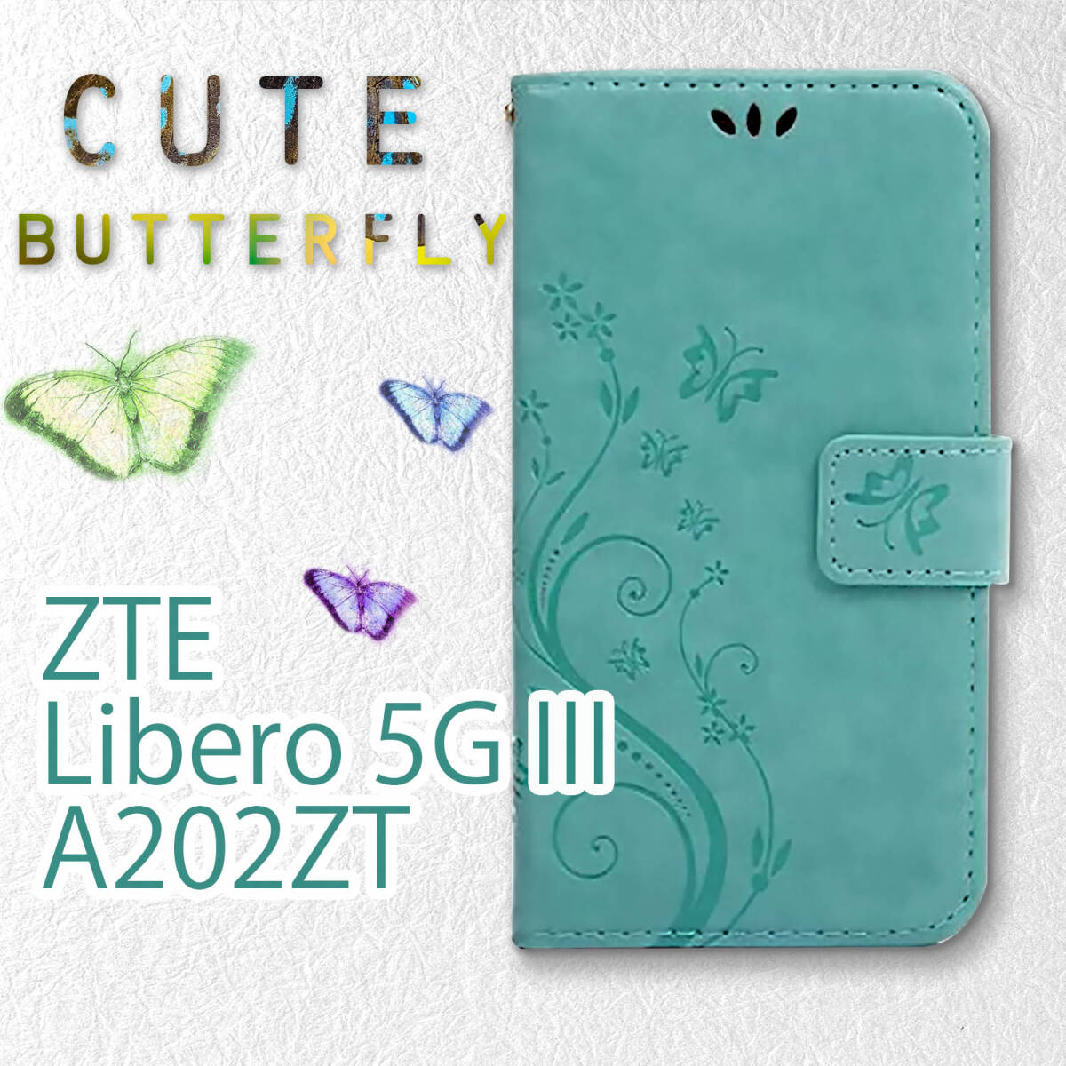 Libero 5G III ケース 手帳型 かわいい リベロ 5G III カバー A202ZT ケース ZTE Libero5G3 リベロ5G3 蝶 グリーン 緑 レザー 革 送料無料