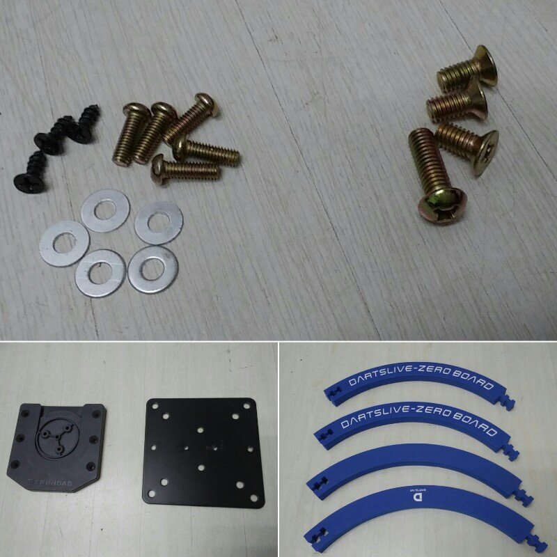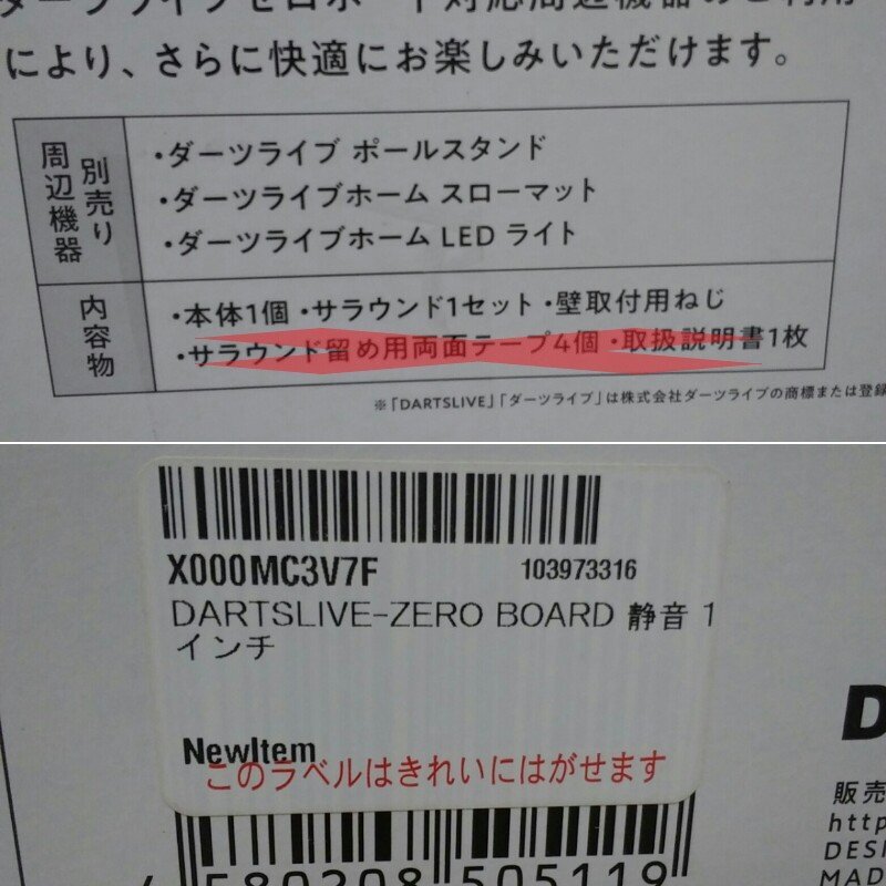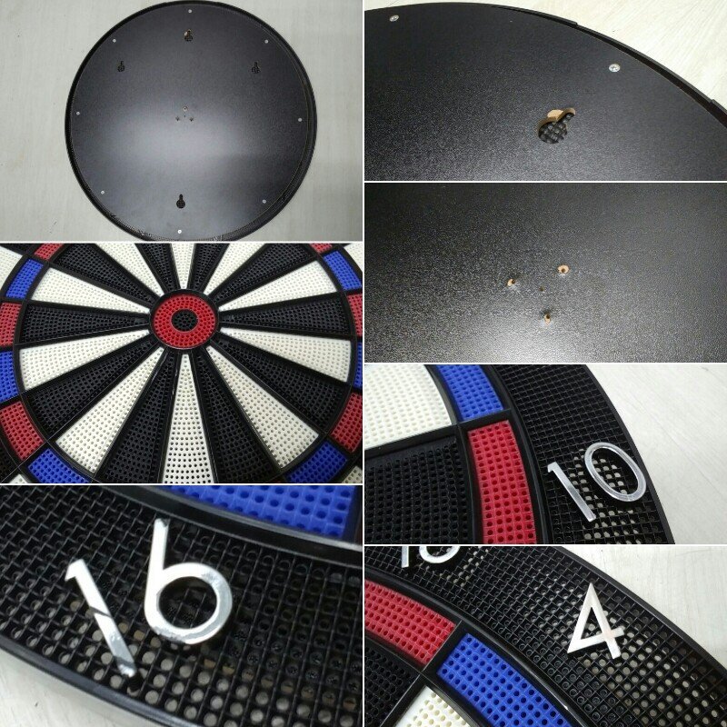 取扱説明書なし。ダーツボードの付属品は画像6枚目の×印が欠品しており、