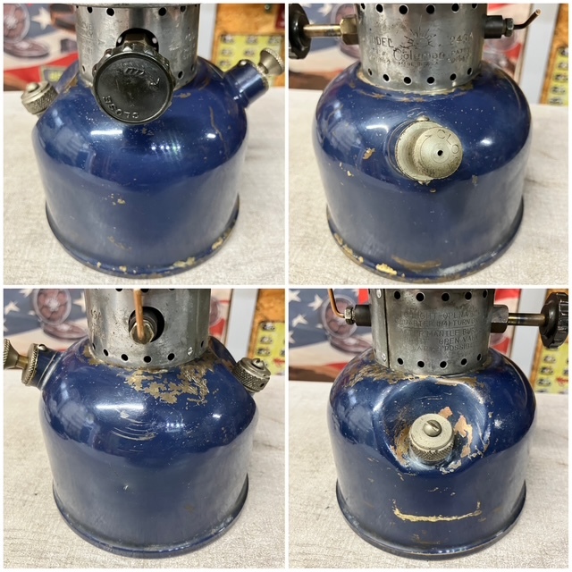 Colemanのランタンの魅力は、 美しさもさることながら、各部品の頑丈さと精度の高さと、 何と言ってもランタンとしての実用性の高さです。 どんなに古いランタンでもキチンとメンテをしてあげれば 必ず使えるようになります。 当店の商品は、出来る限りオリジナルの状態を 保つようにしています。 何十年も使い込まれたランタンには個体ごとに味があります。 そのヤレた感じを大切にするようにしています。 ただし、ランタンは道具であり使えなければ意味がありません。 可能な限り当時の部品を生かしつつ、必要に応じて 部品の清掃・交換をしてすべてのランタンについて 着火と灯火時間検査を実施し出品しております。 是非ともコレクションの一つとして頂ければ有難いです。 誠意を持って良い商品を出品して参りますので 末永くよろしくお願いいたします。 | |||||||||||||||||||||||