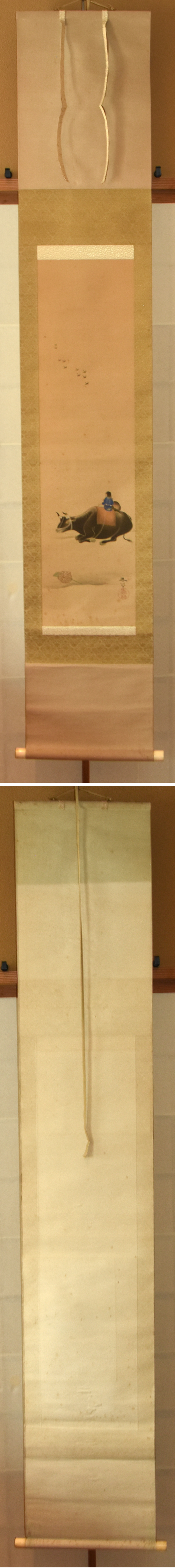 【模写】春草「牛」絹本 巧芸画 書画 絵画 日本画 風景画 古美術 骨董 軸 掛け軸 |