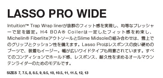 Lasso-Proはレスポンスの良い硬めのブーツで、装着もイージー。