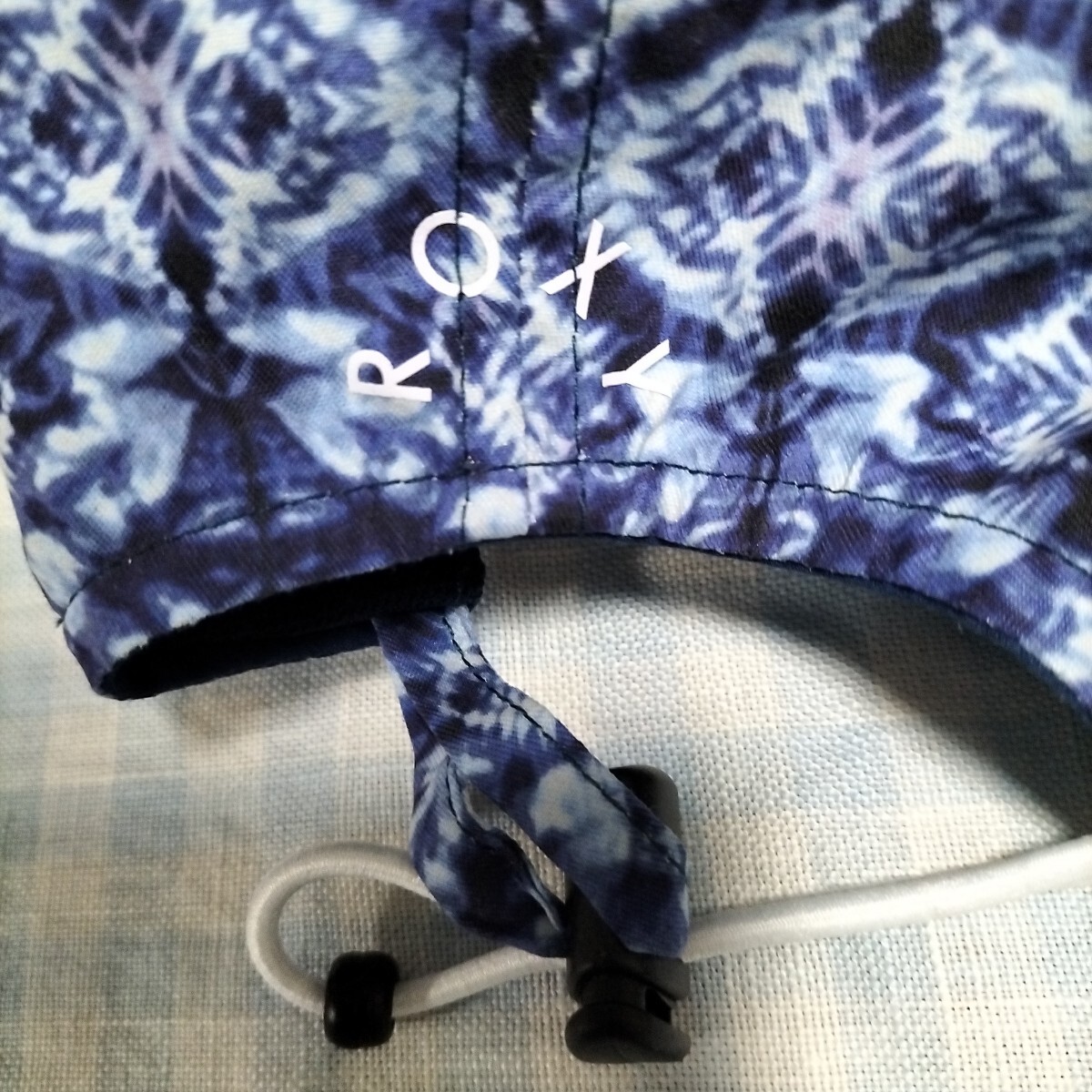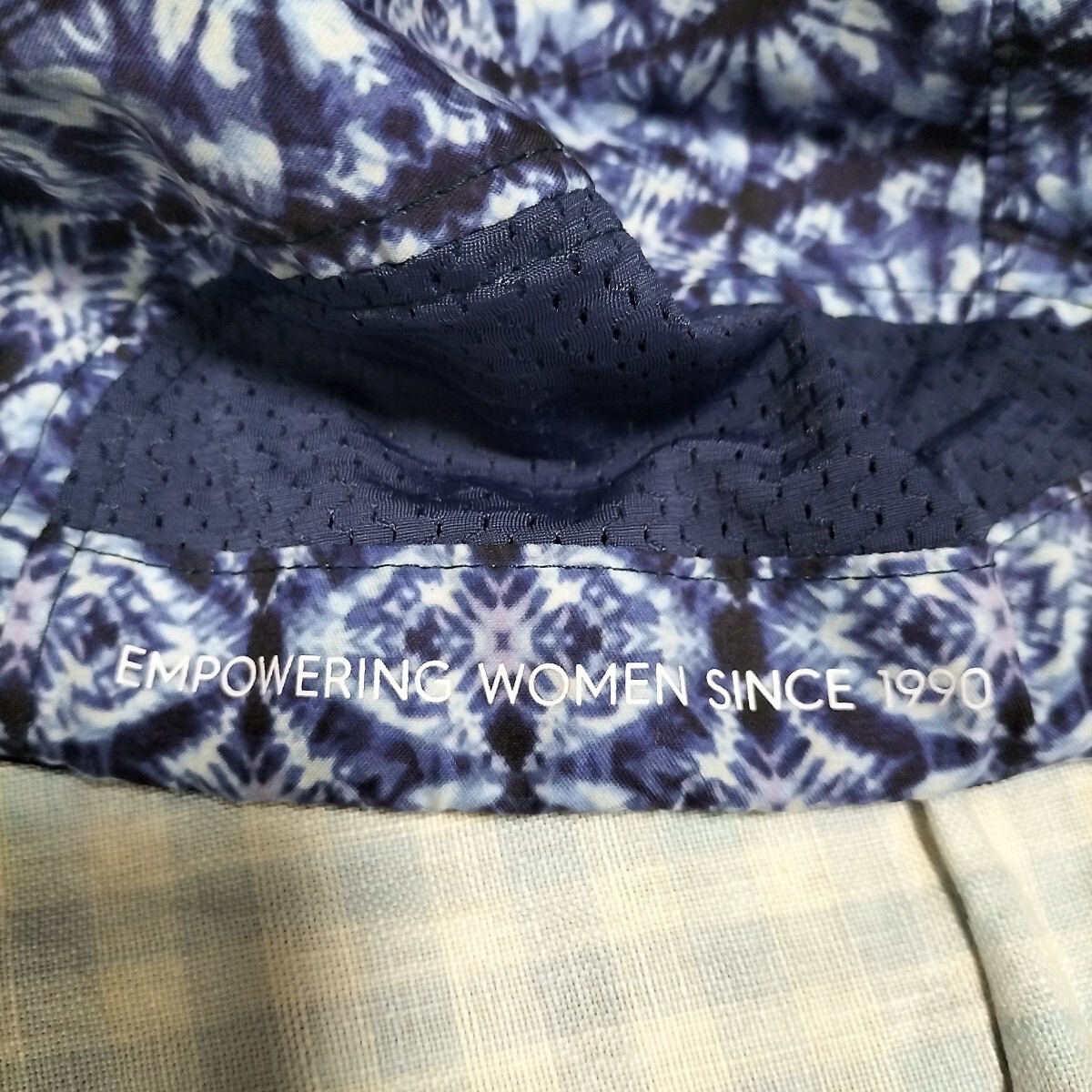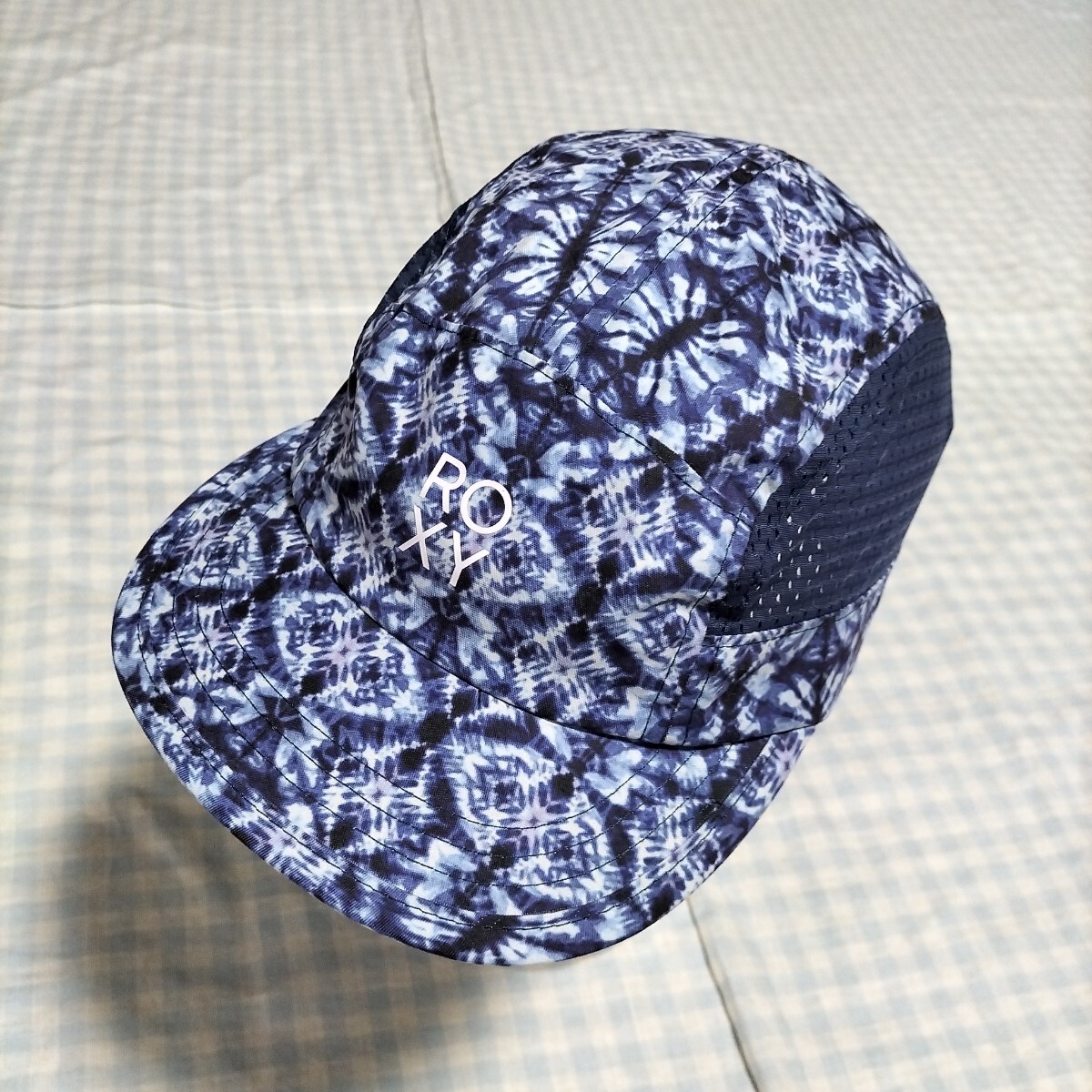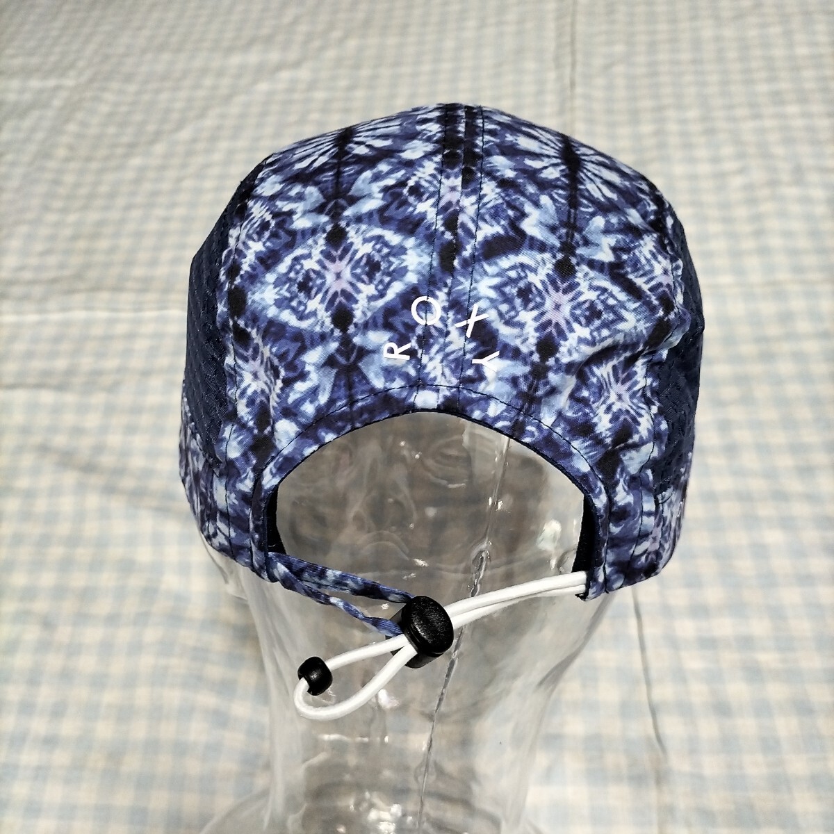 色は青紫系の濃淡タイダイっぽい柄 メッシュ部分は紺の無色 サイズはフリー 後ろのゴムで調節できます。レディース、キッズ向き つばの長さ5.5cm