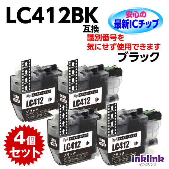ブラザー 互換インクカートリッジ LC412BK x4個(染料インク)