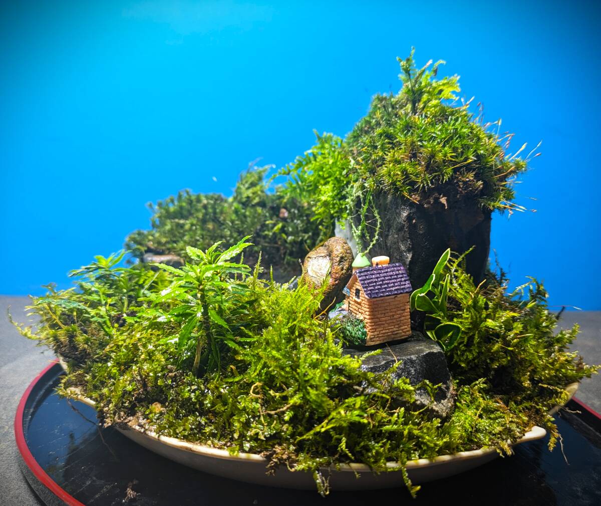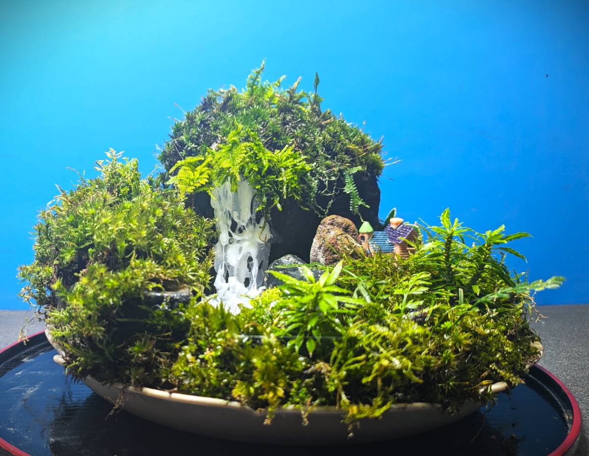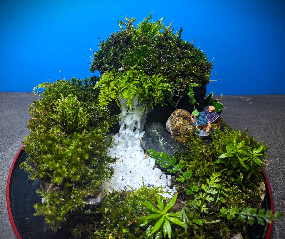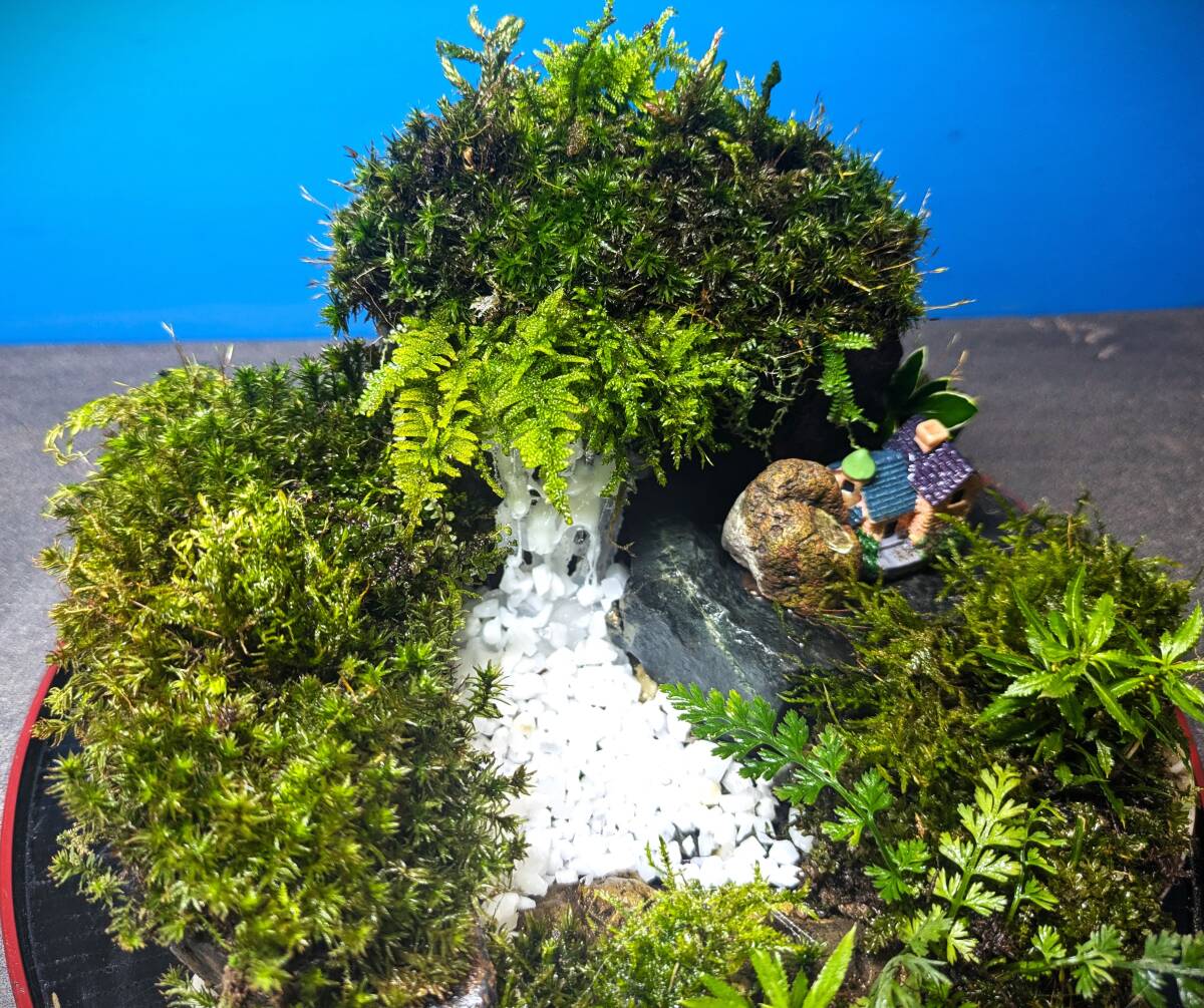 | ▲▽夢道園の/苔テラリユム/苔盆栽/岩山から滝がが流れる風景シリ-ズ■山野草■コケ、苔■KT-114△▼ | ||