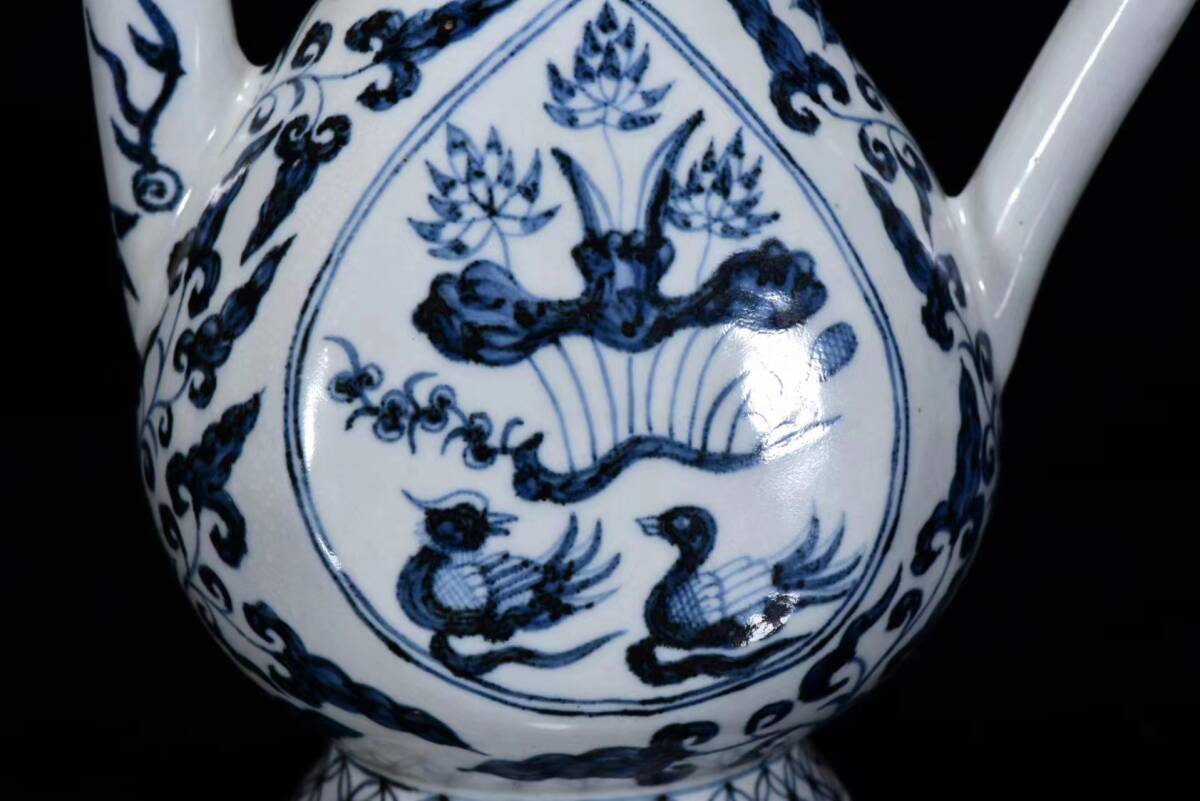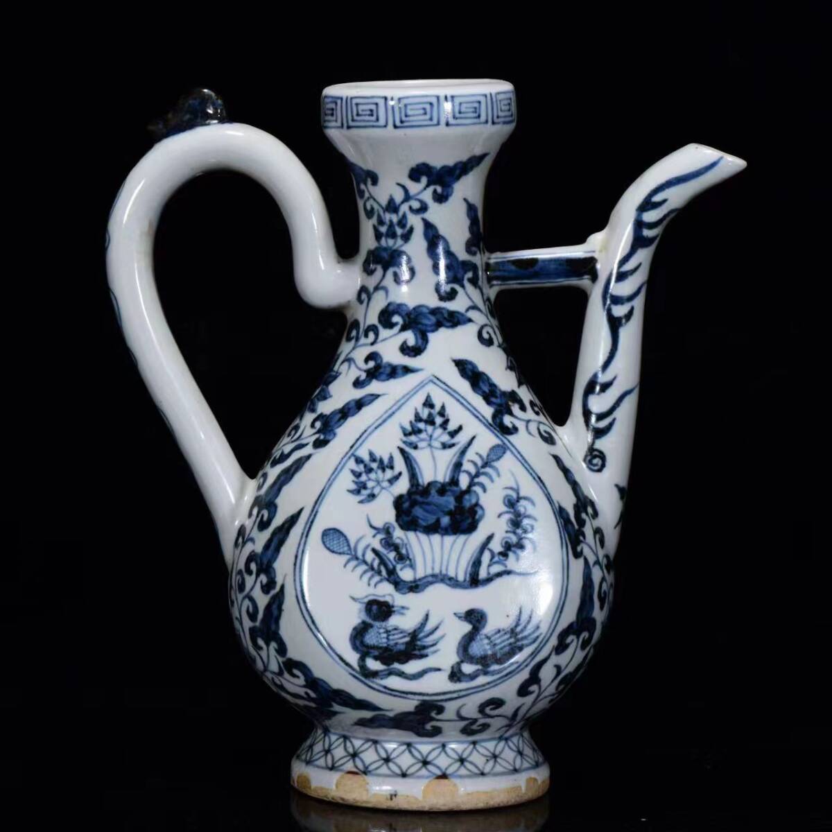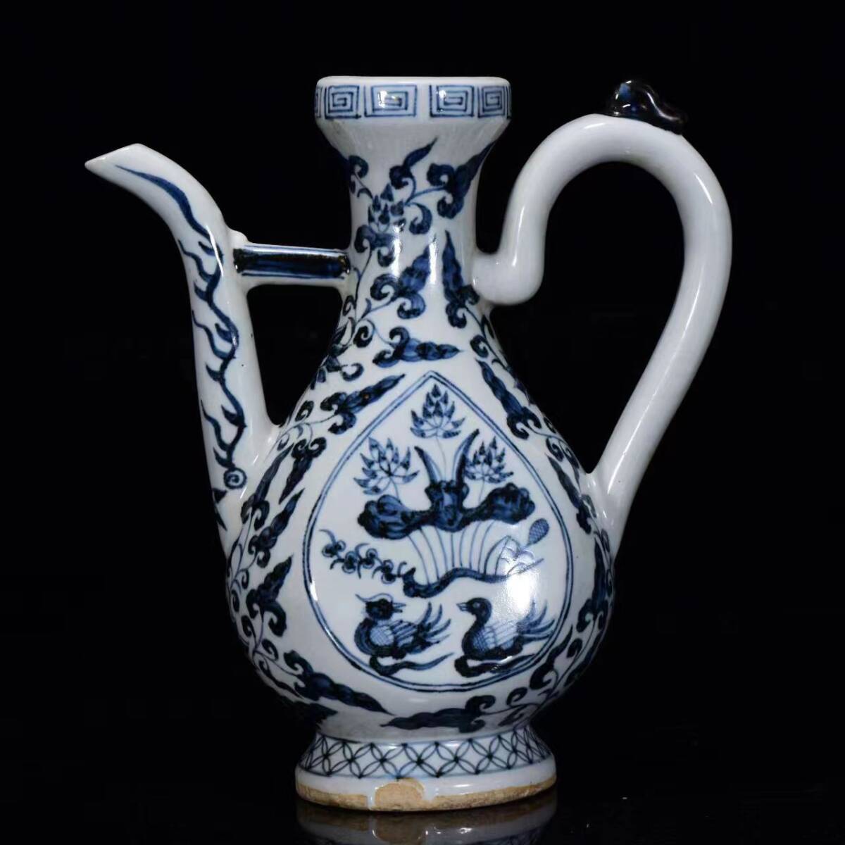 | 【蔵友館蔵品・元・古陶瓷品・青花・鴛鴦戲水紋・酒壺・陶藝】・古董品・中国古玩・時代物・希少珍品・中国時代美術102236 |