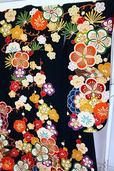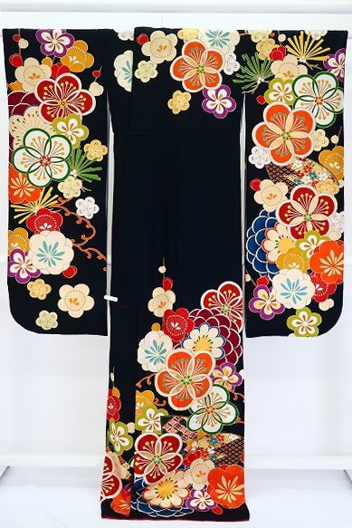 | 【送料無料】美品 振袖 黒 梅 金駒刺繍 金彩加工 トールサイズ 身丈173cm フォーマル 成人式 結婚式 正絹 仕立上がり 着物フィ m-7638 |