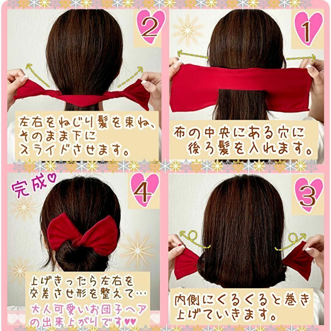 ②布の左右を持ち、内巻きにクルクルとねじりながら髪を巻き上げていきます.*。