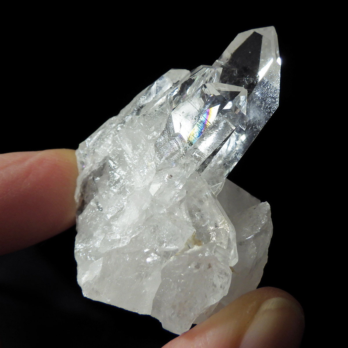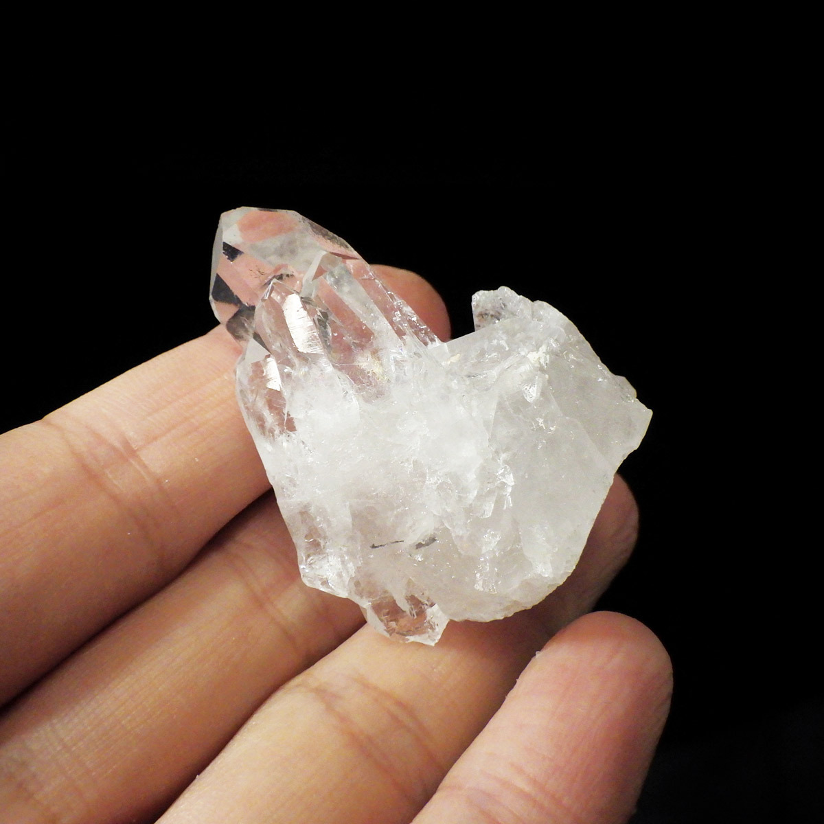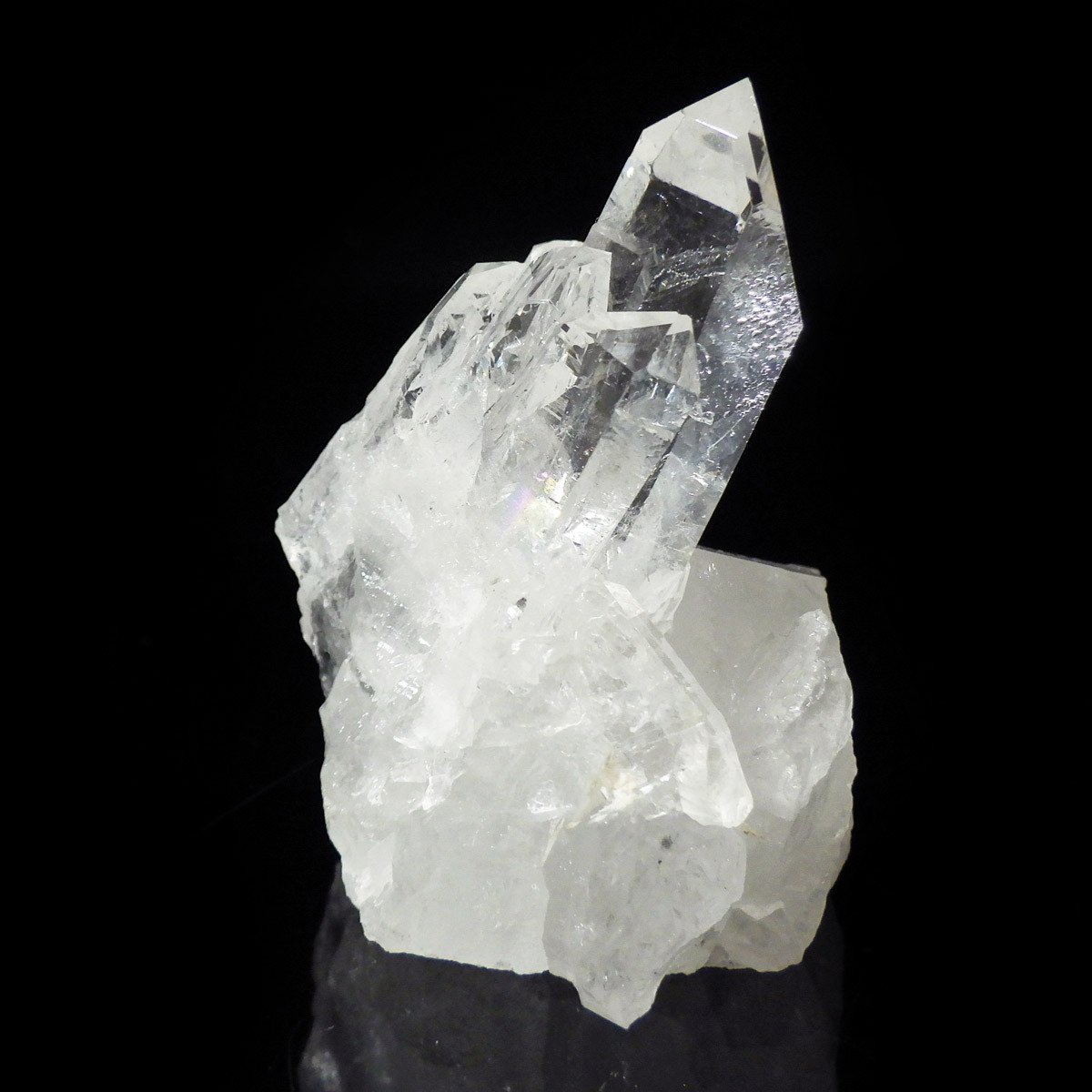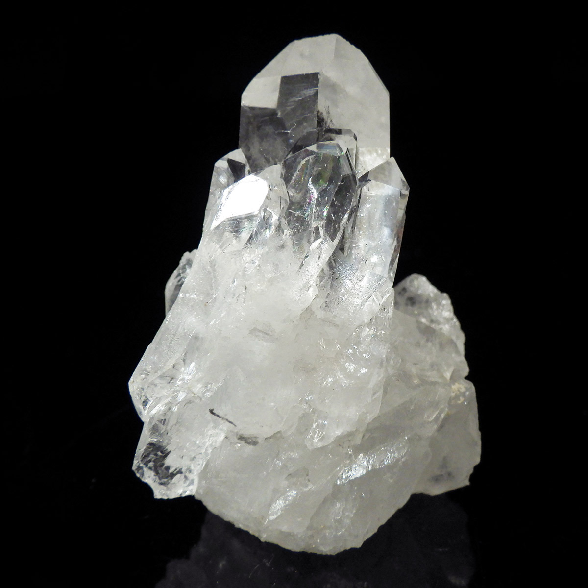 ブラジル トマスゴンサガ産 の水晶クラスターです。トマスゴンサガ産の水晶の特徴は、照りと艶。光沢が強いため、驚くほどキラキラとしています。また、水晶柱が放射線状に伸びて立体的な構造を作っているものが多く、「これぞ、水晶クラスター」という形状をしています。非常に透明度の高い大小様々な結晶が複雑に絡み合い、見る角度によって様々な表情を見せる大変美しいクラスターです。
