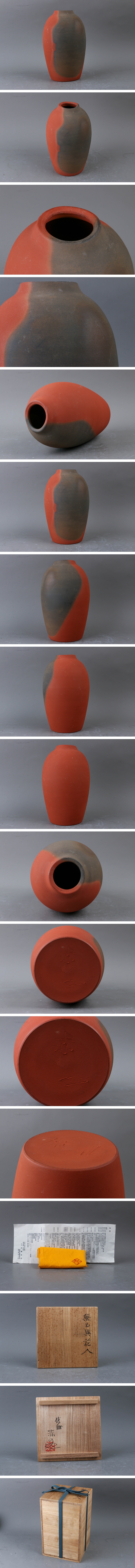 【SAG】人間国宝 五代 伊藤赤水 無名異花入 共箱 共布 栞 茶道具 本物保証