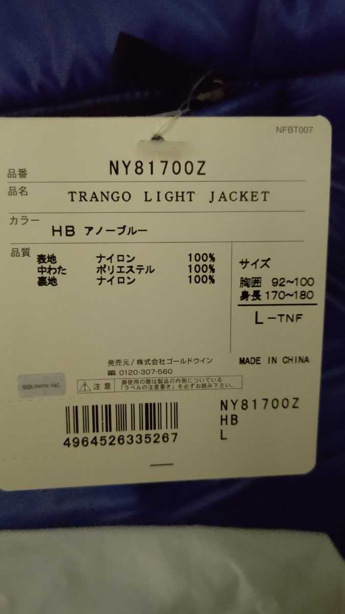 新品 タグ 未使用 ノースフェイス NORTH FACE NY81700Z TRANGO LIGHT JACKET ナイロン ライト ジャケット ダウン マウンテン パーカー 山