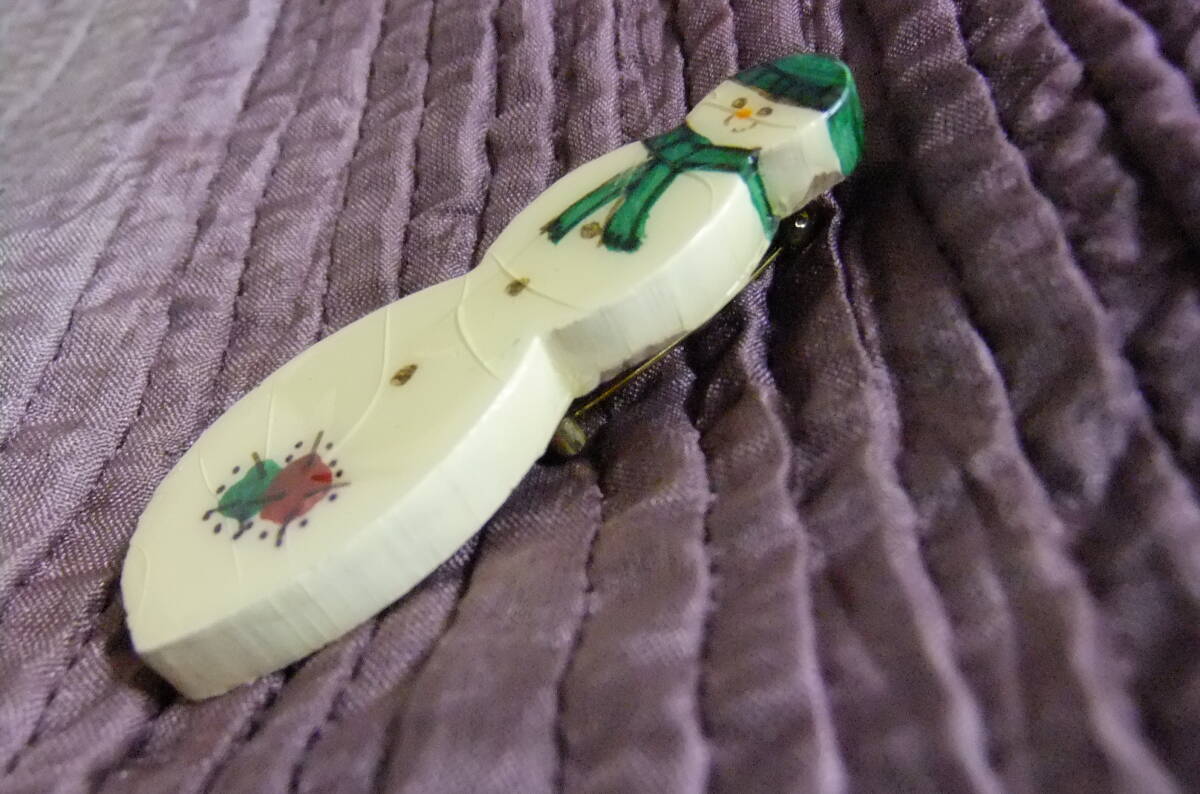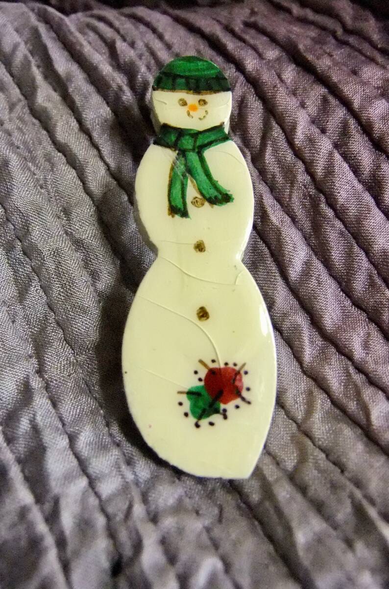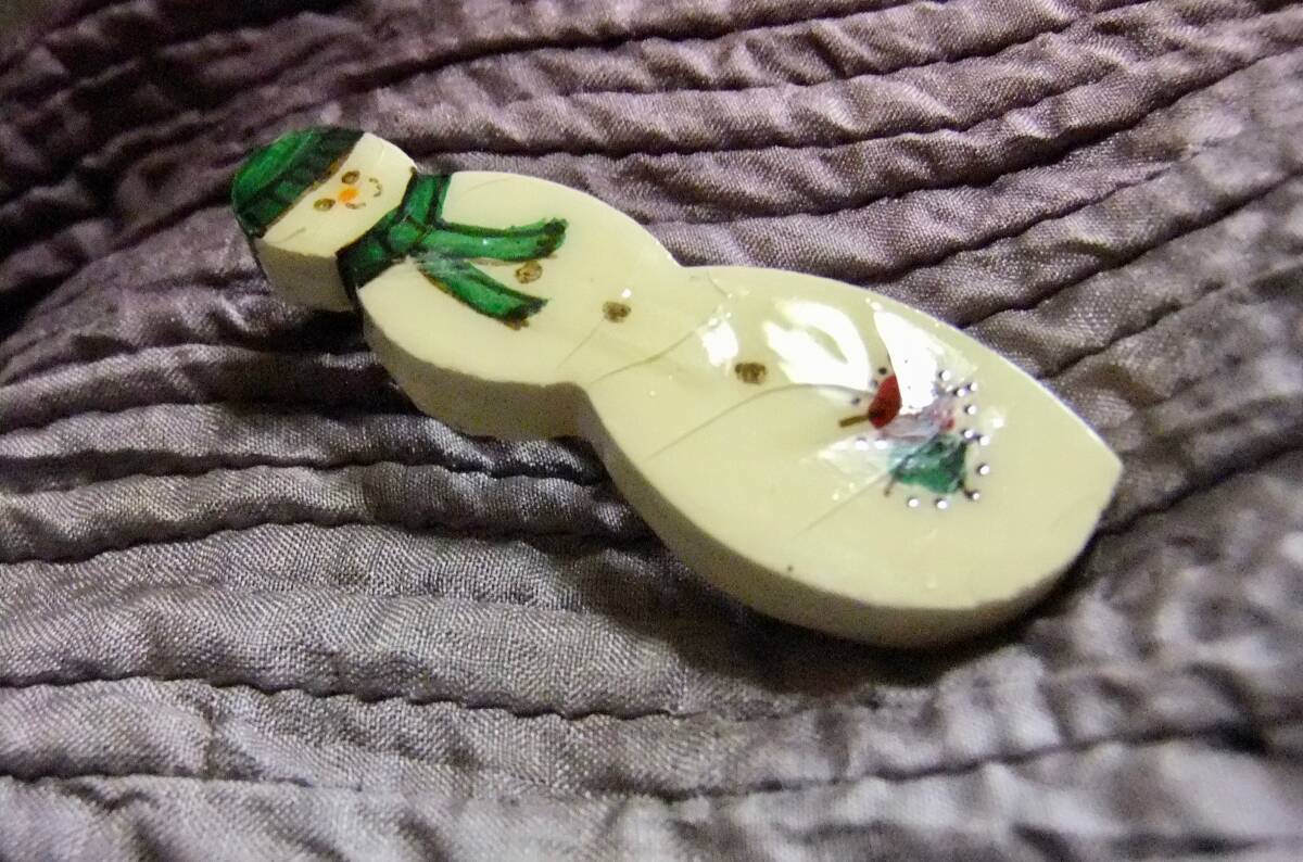 ハンドメイド品かと思われるスノーマンのブローチ。