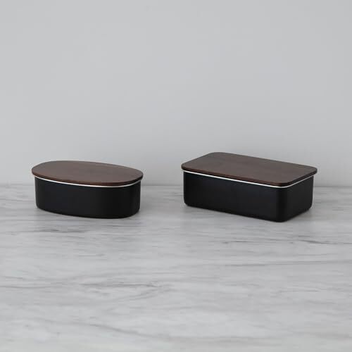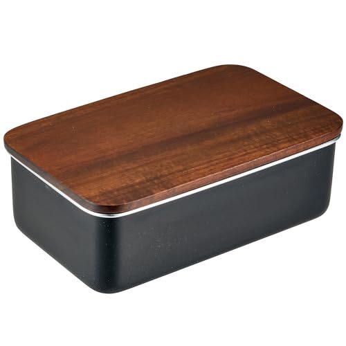 ののじ ステンレス ランチボックス レクタングル 電子レンジ 食洗機 対応 おしゃれでシンプルな弁当箱 天然木のフタ ブラック