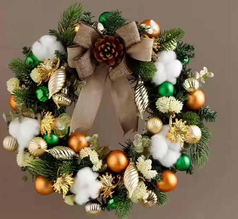 送料無料クリスマスリース★高品質ウォールデコリース★リボン★新品玄関リース★ラッピング★ハンドメイド 実用 耐久性