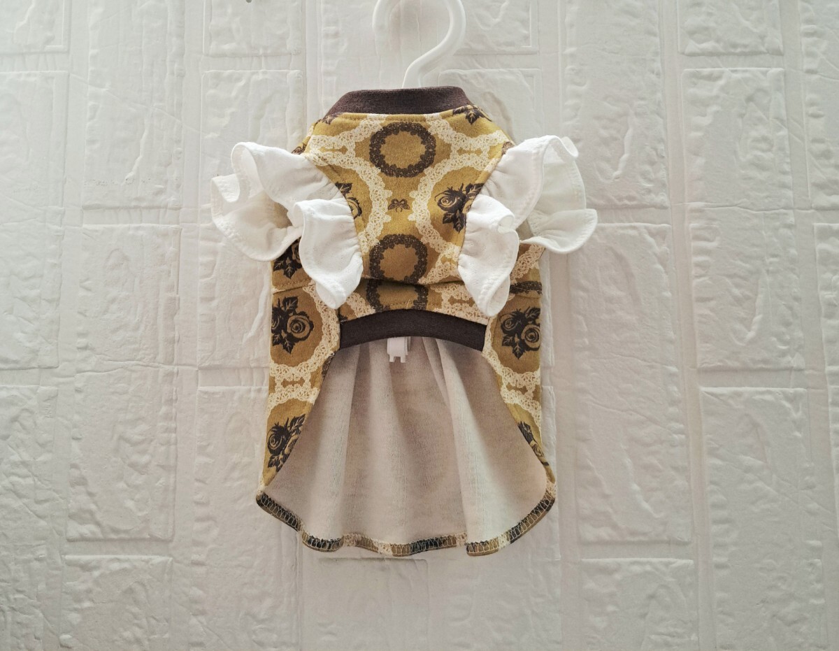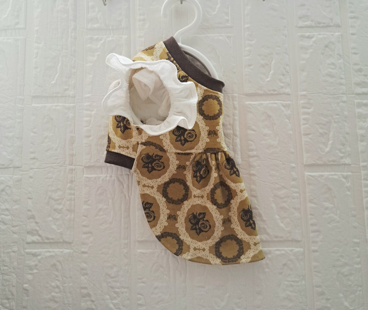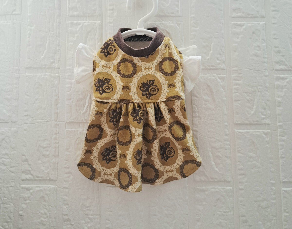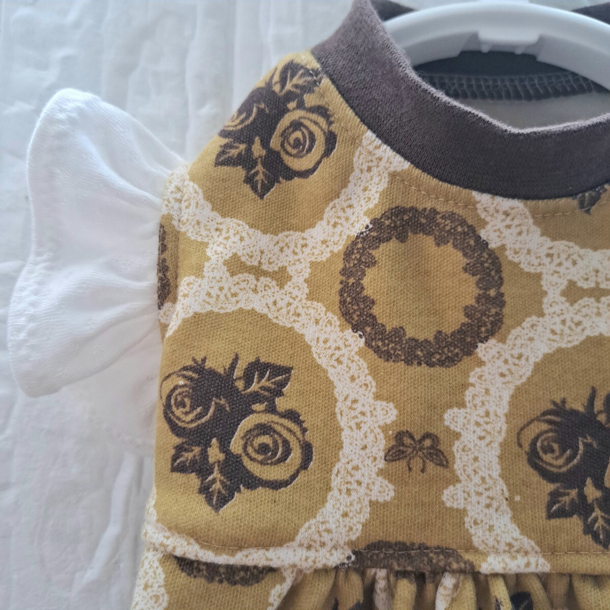 胴32 ハンドメイド  アンティークローズ柄ギャザーワンピース  フリル袖