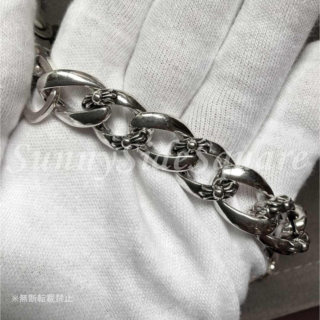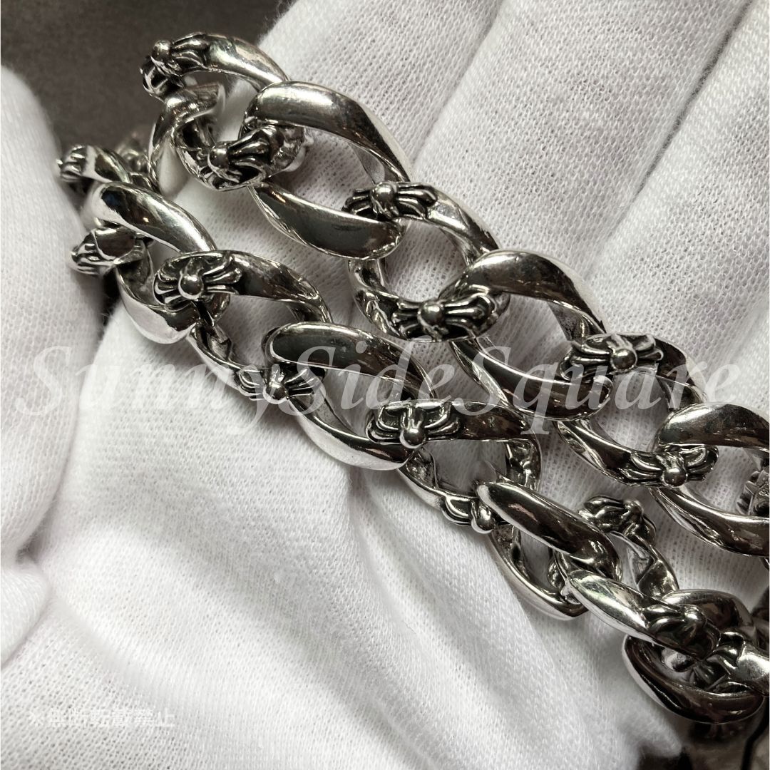 シルバー925コーティング ウォレットチェーン ネックレス ファンシー クロス フラワー ダブルクリップ ヴィンテージ風 メキシカン
