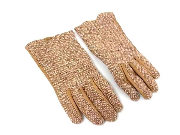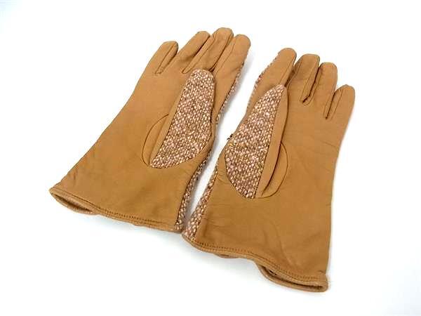 ■美品■ FURLA フルラ レザー×ツイード 手袋 グローブ 防寒具 表記サイズ 7 1/2 レディース ブラウン系 DH0864