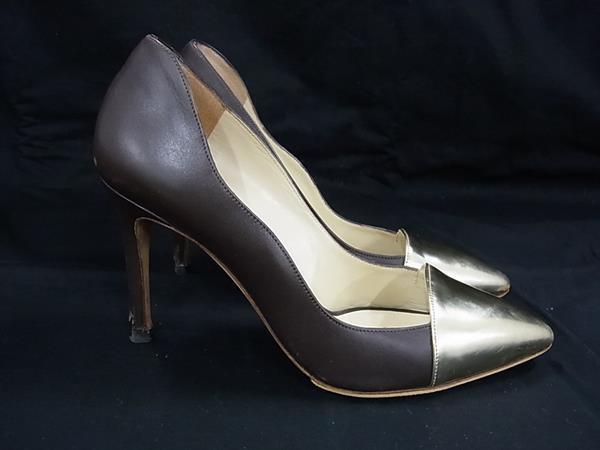 BRUNOMAGLI ブルーノマリ レザー ヒール パンプス 表記サイズ36 1/2(約23.5cm) シューズ 靴 ブラウン系×ゴールド系 DH5682