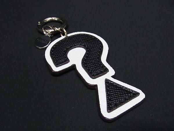 ■極美品■ GUESS ゲス レザー クエスチョンマーク キーホルダー キーリング バッグチャーム ホワイト系×ブラック系 DF2908