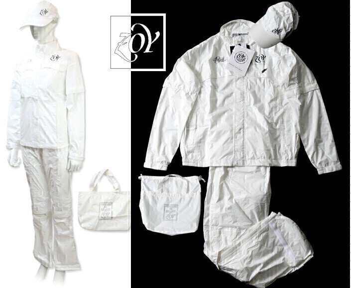 正規★ ZOY ゾーイ★ メンズレインコート セットアップ レインウェア上下セット★キャップ&収納袋付【071719132】ホワイト白【本物保証】