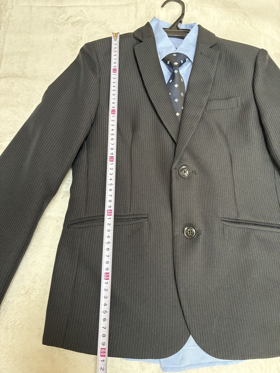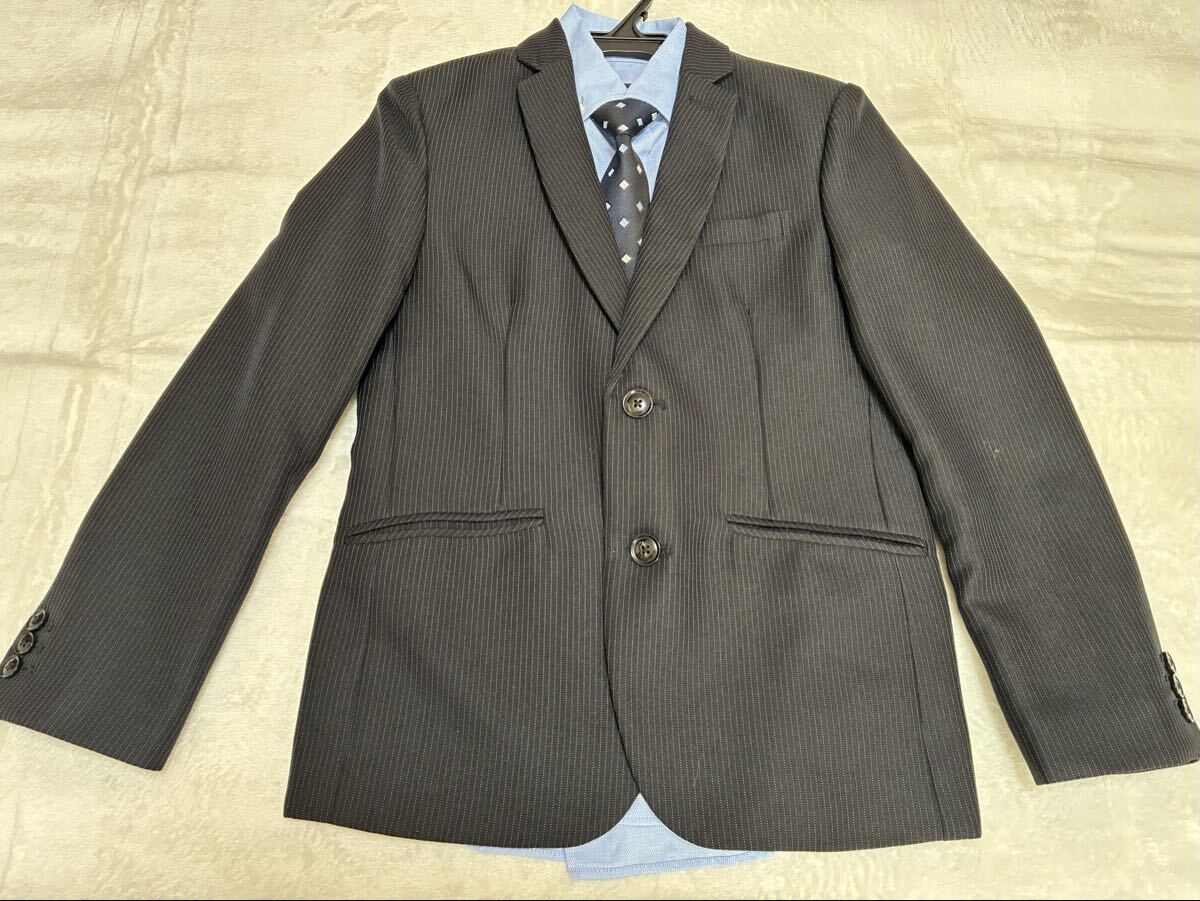 ジャケット・パンツ・長袖シャツ・ネクタイのセットです。