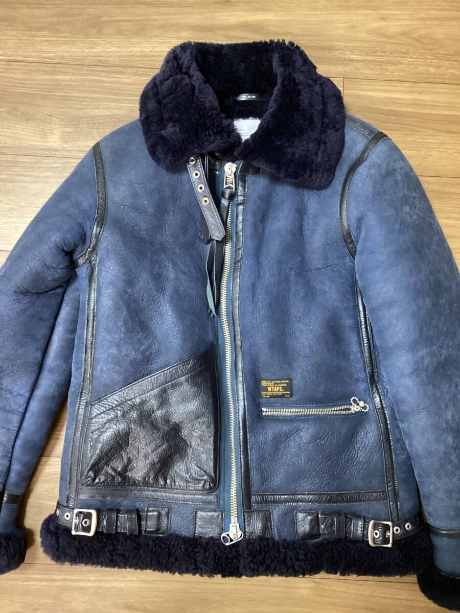 ダブルタップスのムートンジャケットです。サイズはMのネイビーです。ダブルタップスでは現在はレザーを使いませんのでレアです。ムートンですので非常に暖かいです。よろしくお願いします。