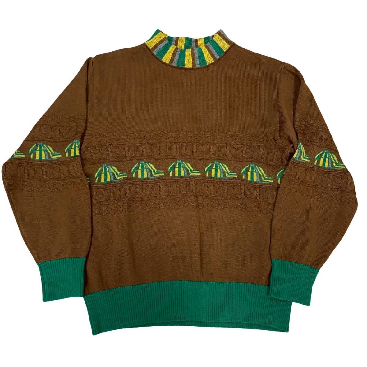 極 美品 Christian Dior クリスチャンディオール ヴィンテージ ウール セーター ニット Mサイズ レディース ブラウン グリーン 08990