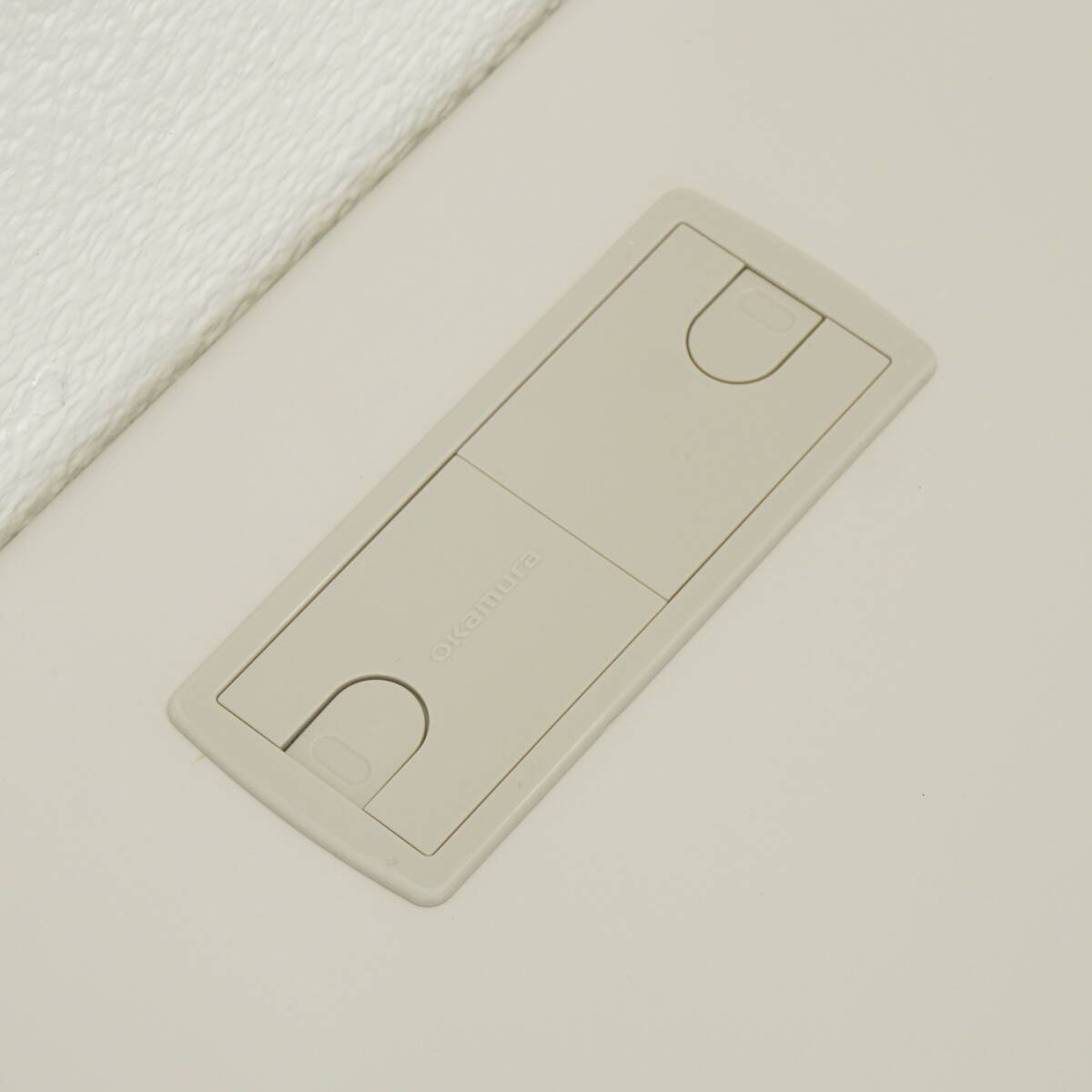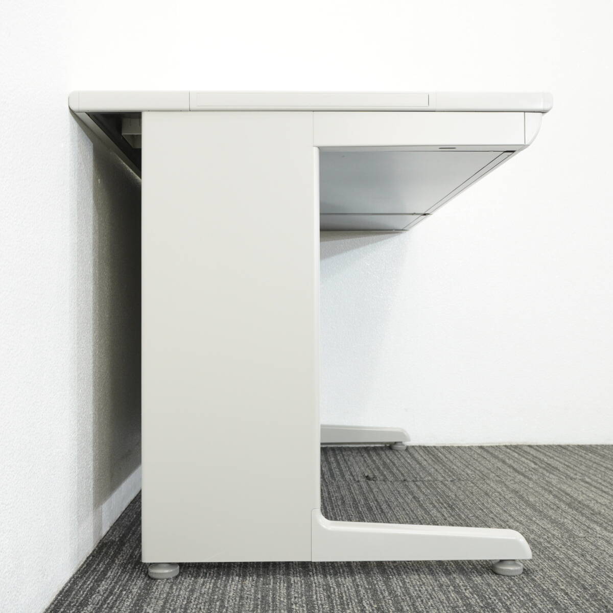 天板奥に配線ダクトがあり、天板から落とした配線は幕板の裏側へ出ますので、足元もスッキリした状態を保つ事が出来る商品となっております。