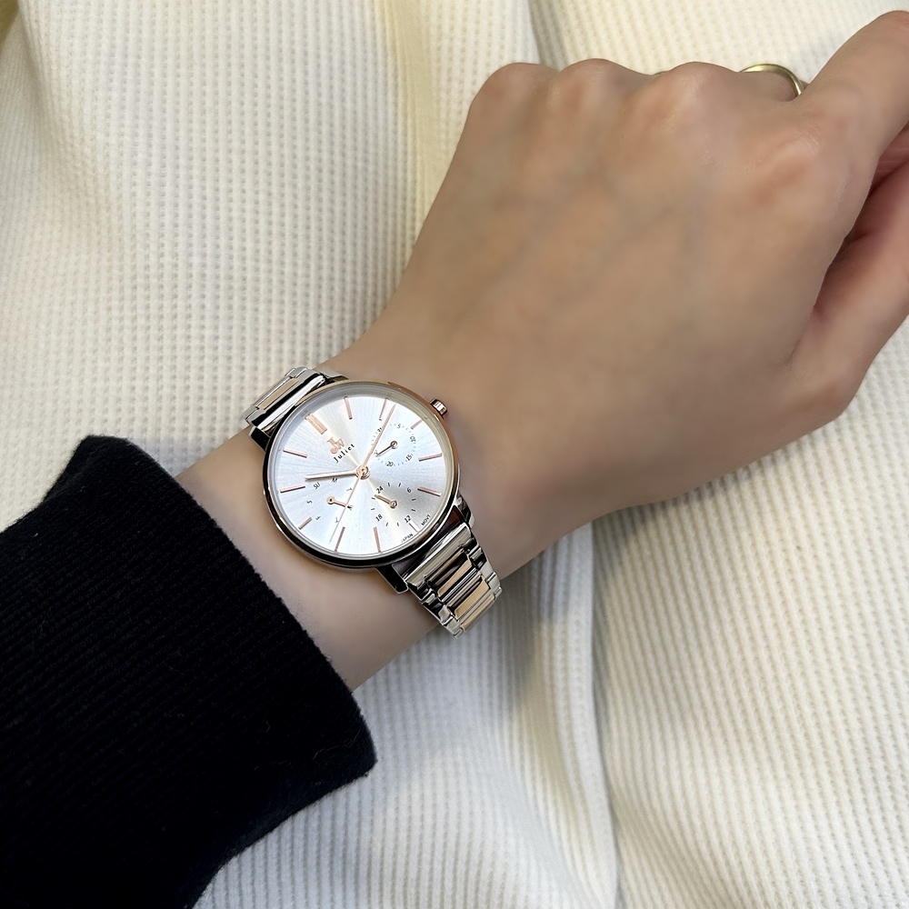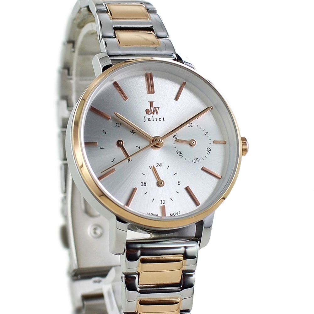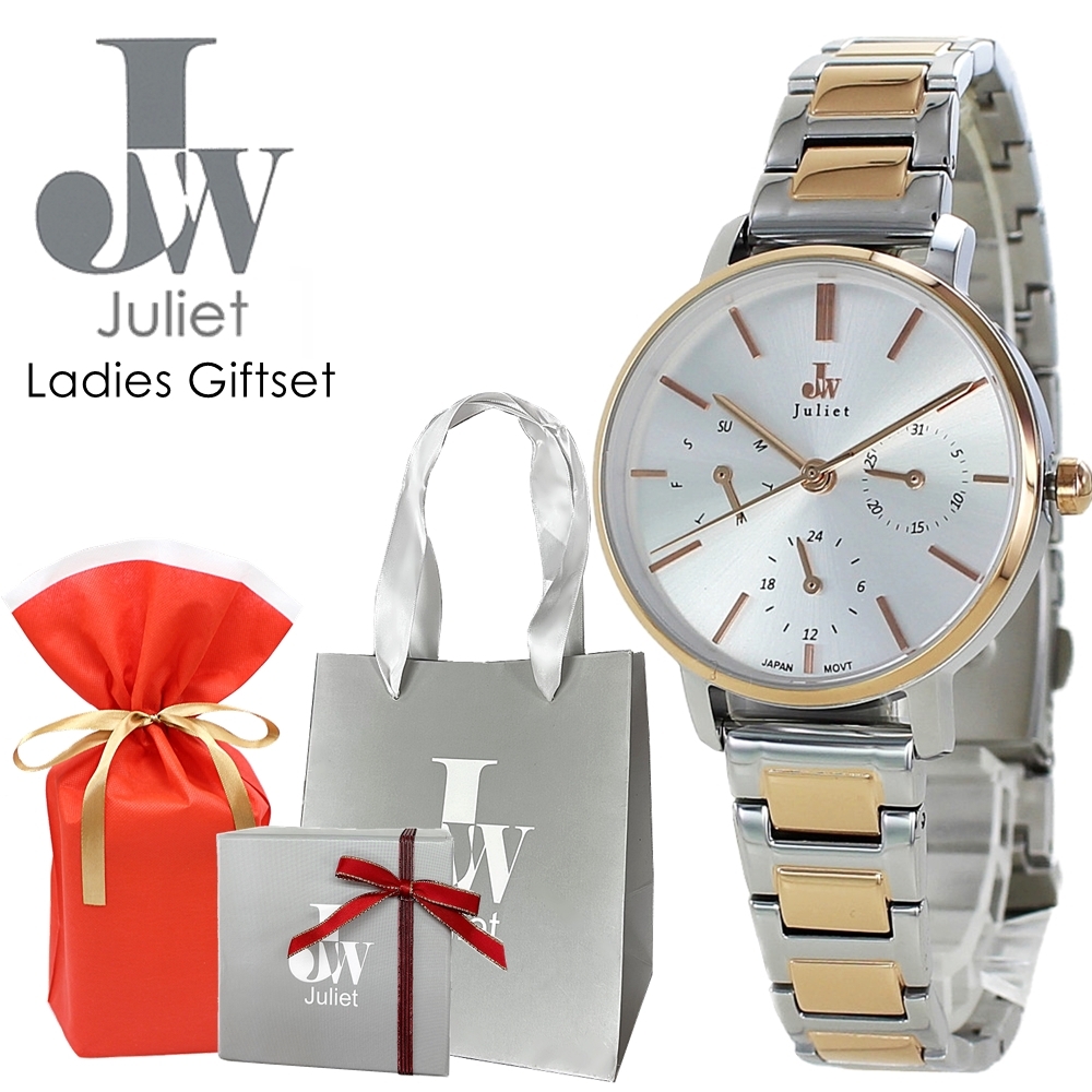【 そのまま渡せる!ギフトラッピング・ショッパー付きです 】(※こちらの商品はギフトセットの為、ラッピング・紙袋の追加購入は必要ございません。) ※ラッピングはBOXにリボンをかけて、リボンバック(不織布)に入れてお届けします。★ベルギー王侯貴族の誇り高き森の香り、ヨーロッパ文化を継承したデザインが美しいヨーロピアンブランドJW(ジュリエットウォッチ)です。■ブランド:julietwatch(ジュリエットウォッチ)■クオーツ(電池式)■電池交換について:量販店の時計売り場や最寄りの腕時計店で可能なモデルです。■防水性:日常生活防水■機能:カレンダー(曜日・日付)、24時間表示計■サイズ(約)時計の幅:32mm(リューズを含まず)ベルト腕周り:スタンダード■ベルトカラー:シルバー、ゴールド■ブランド専用BOX・ブランドショッパー付き※ブランドBOXは入荷月によって異なる場合がございます。予めご了承くださいませ。■保証期間:1年間9307l-silver-gift女性向けプレゼント 妻が喜ぶプレゼント 祖母 母親 彼女プレゼント 敬老の日 女友達 同僚 ギフト プレゼント 入社祝い 退職祝い かわいい時計 女性 誕生日プレゼント
