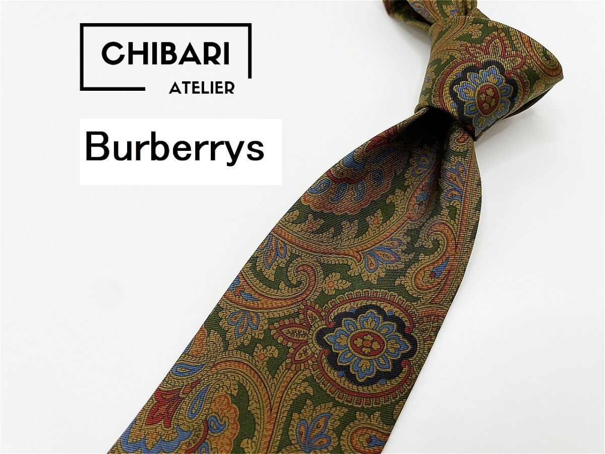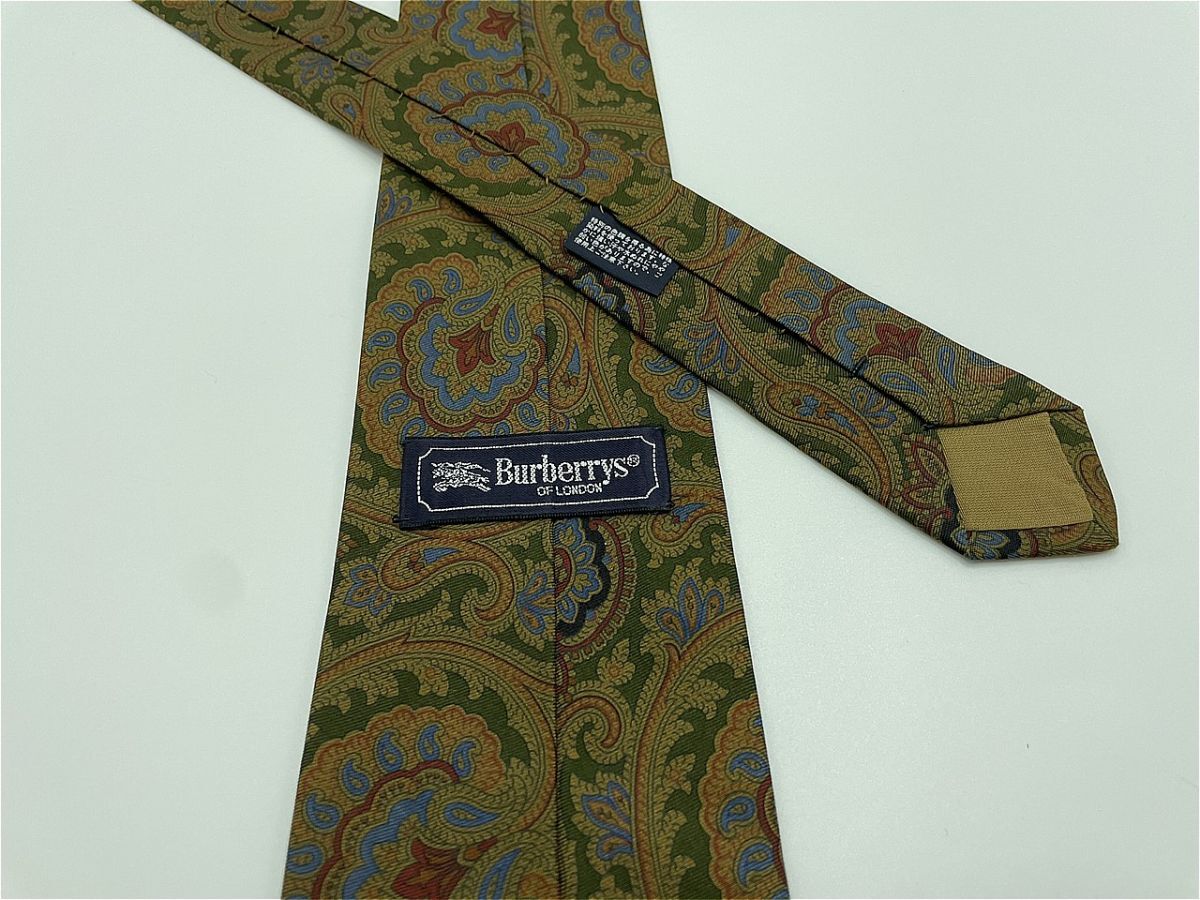 【美品】Burberrys バーバリー ペイズリー柄 ネクタイ 3本以上 送料無料 メンズ グリーンブラウン 0904040