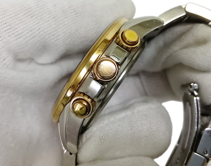 CITIZEN シチズン メンズ 腕時計 E660-S121043 エコドライブ 電波ソーラー クロノグラフ デイト SS コンビカラー 黒文字盤 稼動品