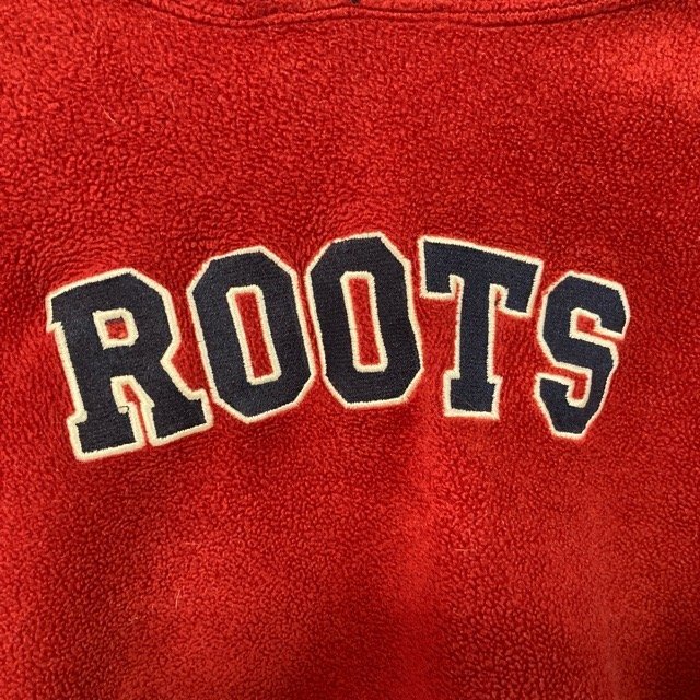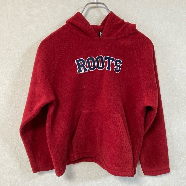 A125 ルーツ Y.G L アメリカ古着 カナダ製 キッズ古着 フリース 長袖 パーカー ボア レッド ROOTS キッズ